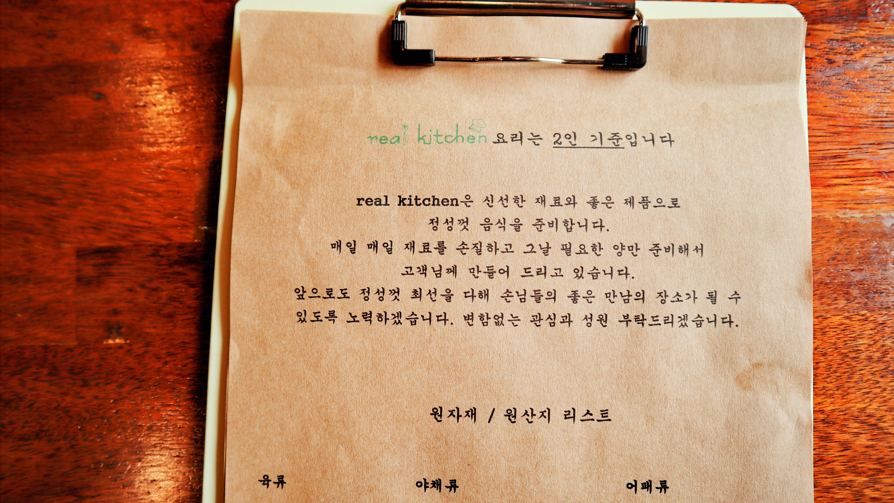 리얼키친은 1개의 메뉴가 2인분으로 나온다. 2명이서 가면 1메뉴 시켜서 먹어도 충분하며 대식가들만 두당으로 시켜야한다. 양 엄청 많다.