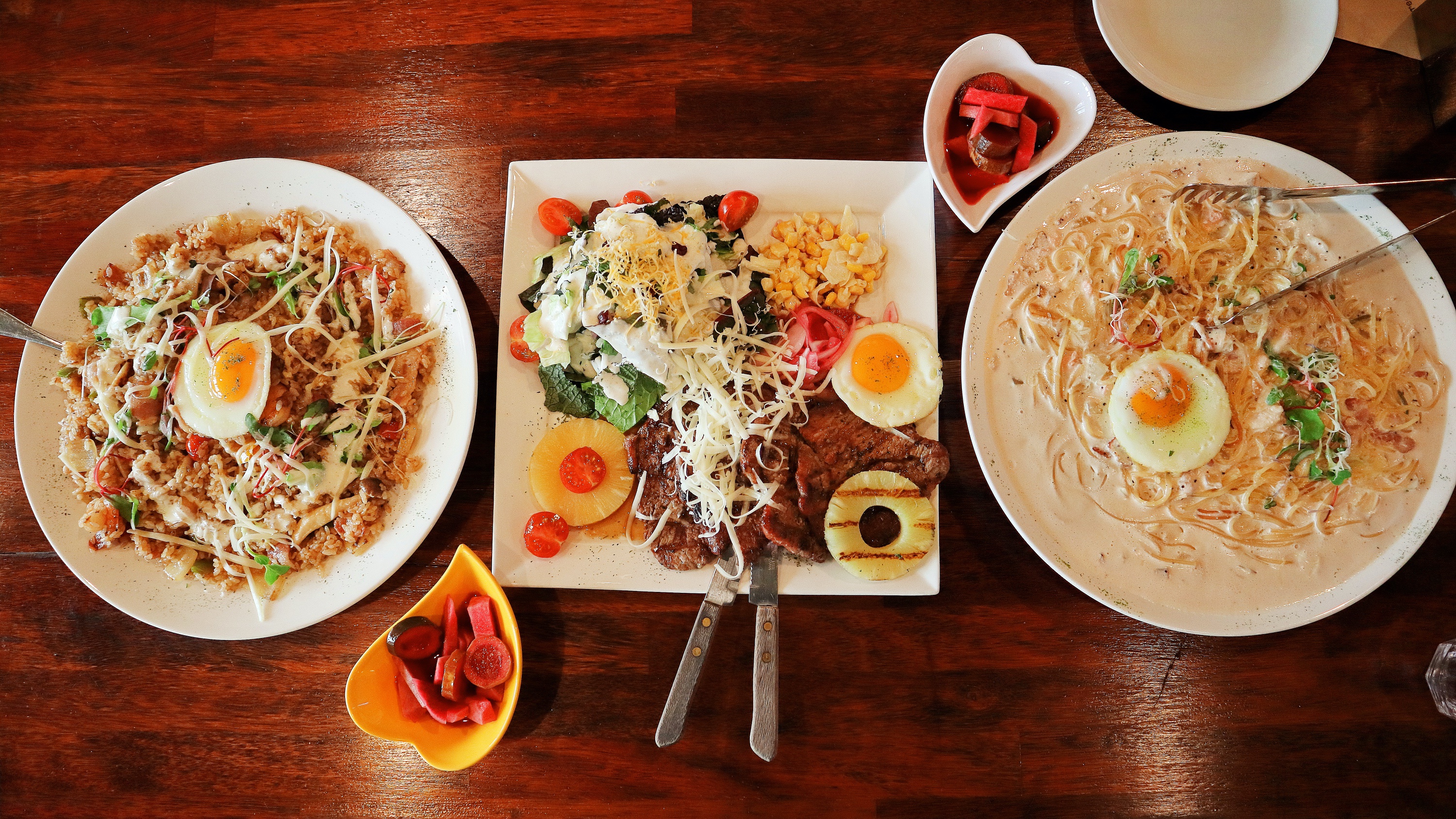 뜨거울 때 먹어야 맛있으므로 스테이크를 먼저 먹는걸 추천한다. 필라프랑 스파게티 먹다가 고기 나중에 먹었더니 식어버려서 사장님께 좀 데워달라고 해서 먹었더니 확실히 맛있다.