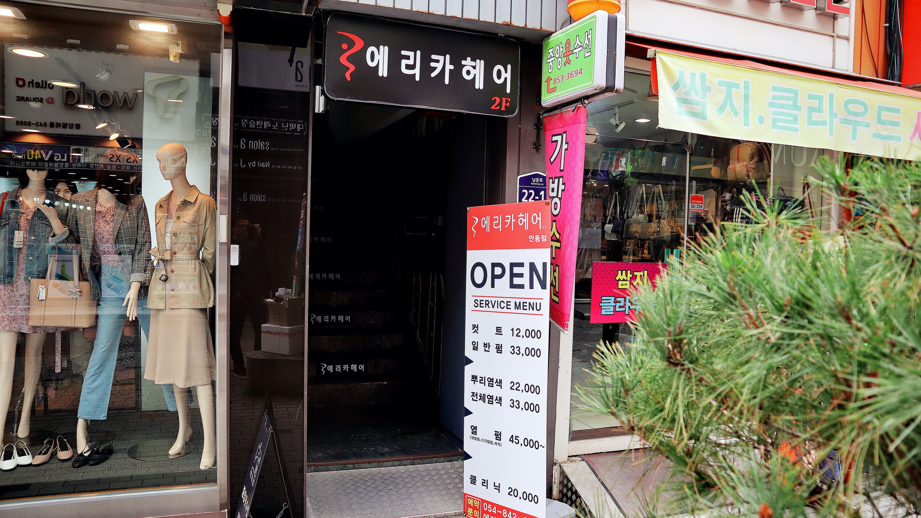 리얼키친은 3층에 자리잡고 있어서 위치를 모르면 의외로 찾기가 힘들 수 있다. 대부분의 식당이 1층에 자리잡은 안동에서는 특히 더 그렇다. 좀 큰 도시에서는 원래 이렇게 상가 안에 식당이 있는 경우가 많아서 미리 위치를 알고 가면 도움이 된다. 여기 있는 에리카헤어 계단으로 올라가면된다. 2층이 에리카헤어이고 3층이 리얼키친. 예전에는 밖에 엑스배너도 세워두고 했던데 이 날은 평일이라 그런지 없었다. 평일/주말 모두 엑스배너 세워주면 좋을 듯.