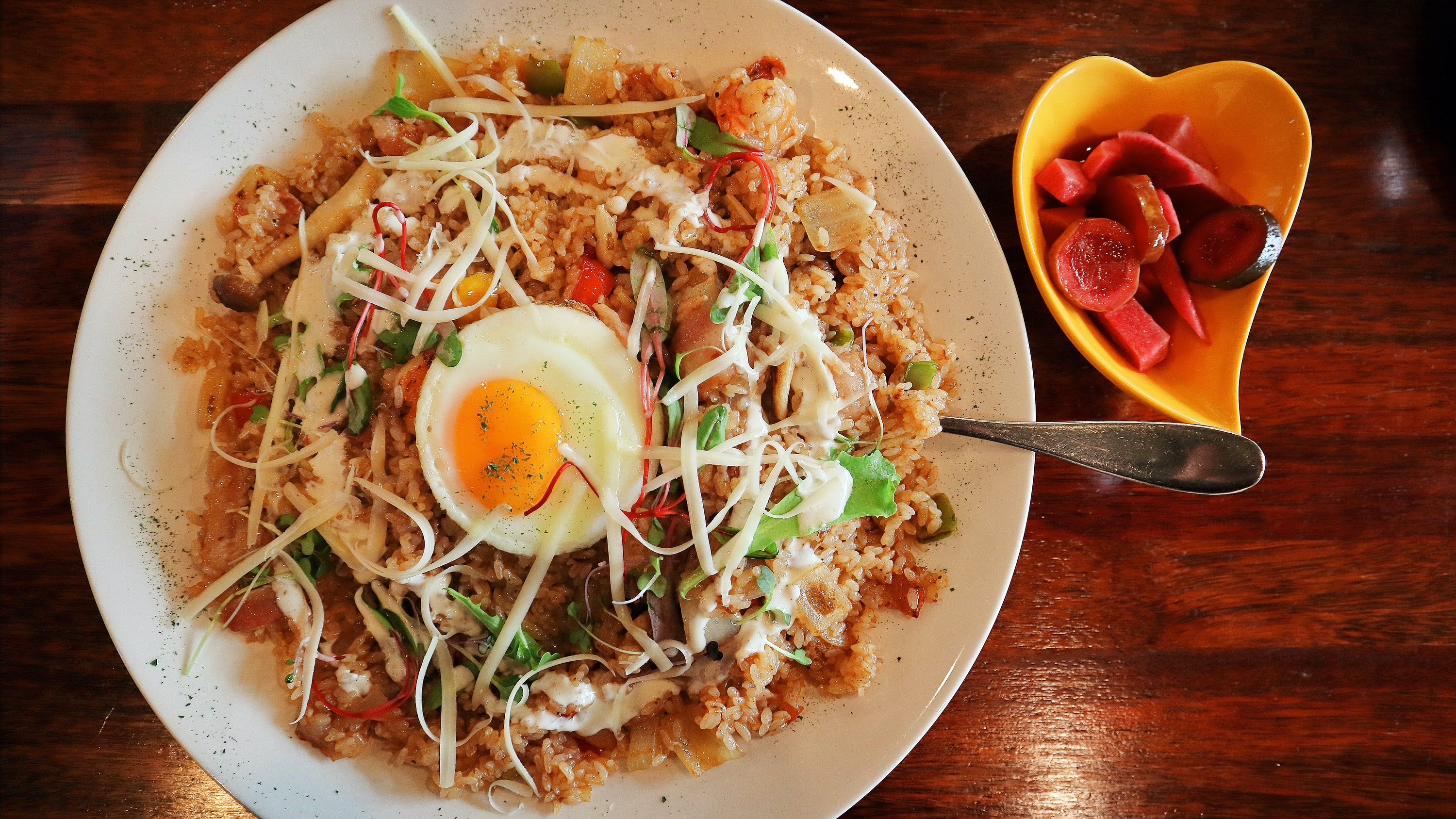 제일 먼저 메인메뉴이자 리얼키친에서 제일 맛있는 필라프! 이건 새우 베이컨 필라프인데 베이컨이 푸짐하게 들어있어서 상당히 맛있는 편이다. 새우도 꽤 들었다. 양이 굉장히 많고 2인분이라서 혼자서는 다 못먹으니까 일행과 같이 먹어야한다. 같이 주는 반숙이 하이라이트. 리얼키친 시그니처 메뉴라고 보면된다.