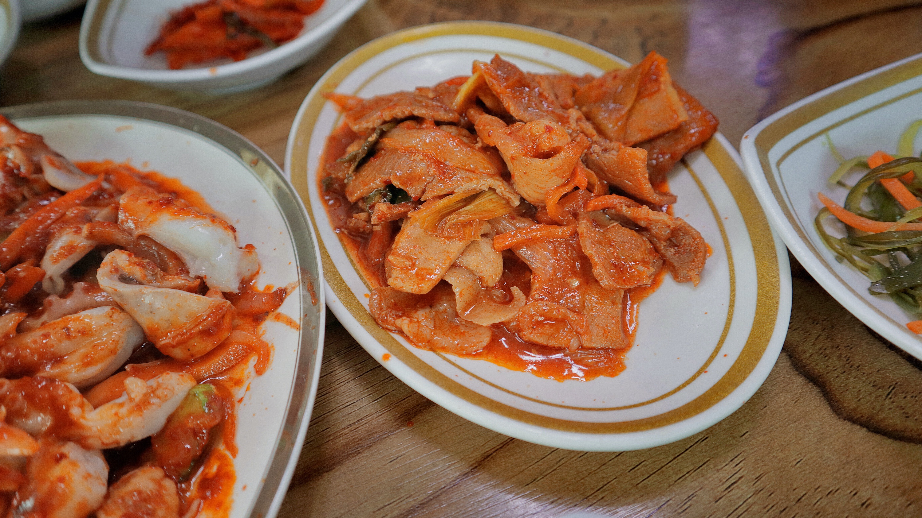 나도 처음가봐서 몰랐는데 이제는 알게됐다. 여기에 있는 제육을 비롯해서 밑반찬은 매일 바뀐다. 백반집이니까 원래 그런거겠지? 낙지볶음의 경우 여기에 낙지볶음과 청국장을 추가로 준다. 그러니까 낙지볶음을 주문하면, 백반 메뉴 + 청국장 + 낙지볶음을 주는 형태이며 여기에 정식에서 주는 국이 빠진다. 나는 낙지볶음과 제육을 함께 즐기니까 매우 좋았었는데 지갑 사정에 따라서는 가정식 백반으로 가성비를 즐기는 것도 좋겠다.