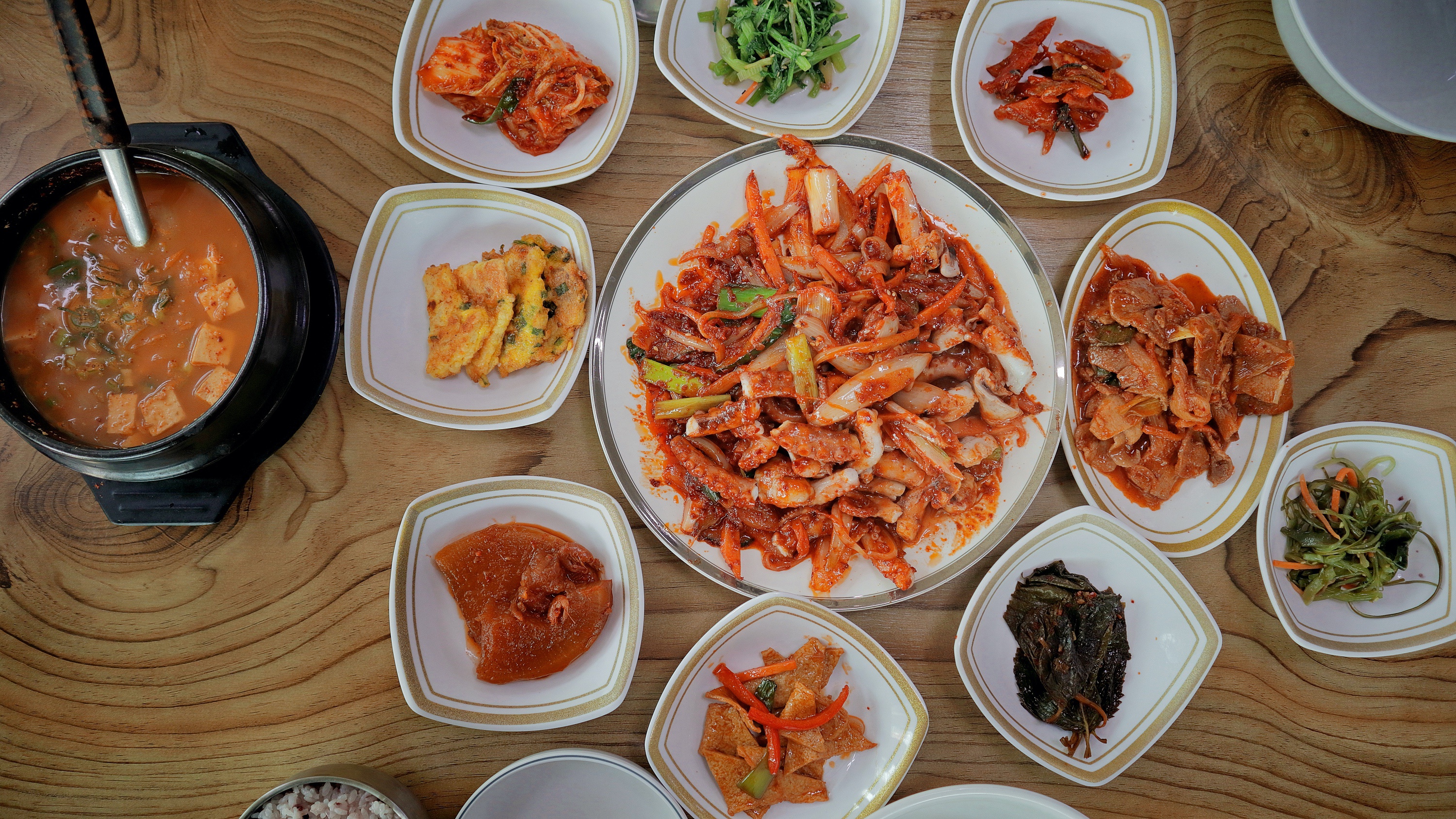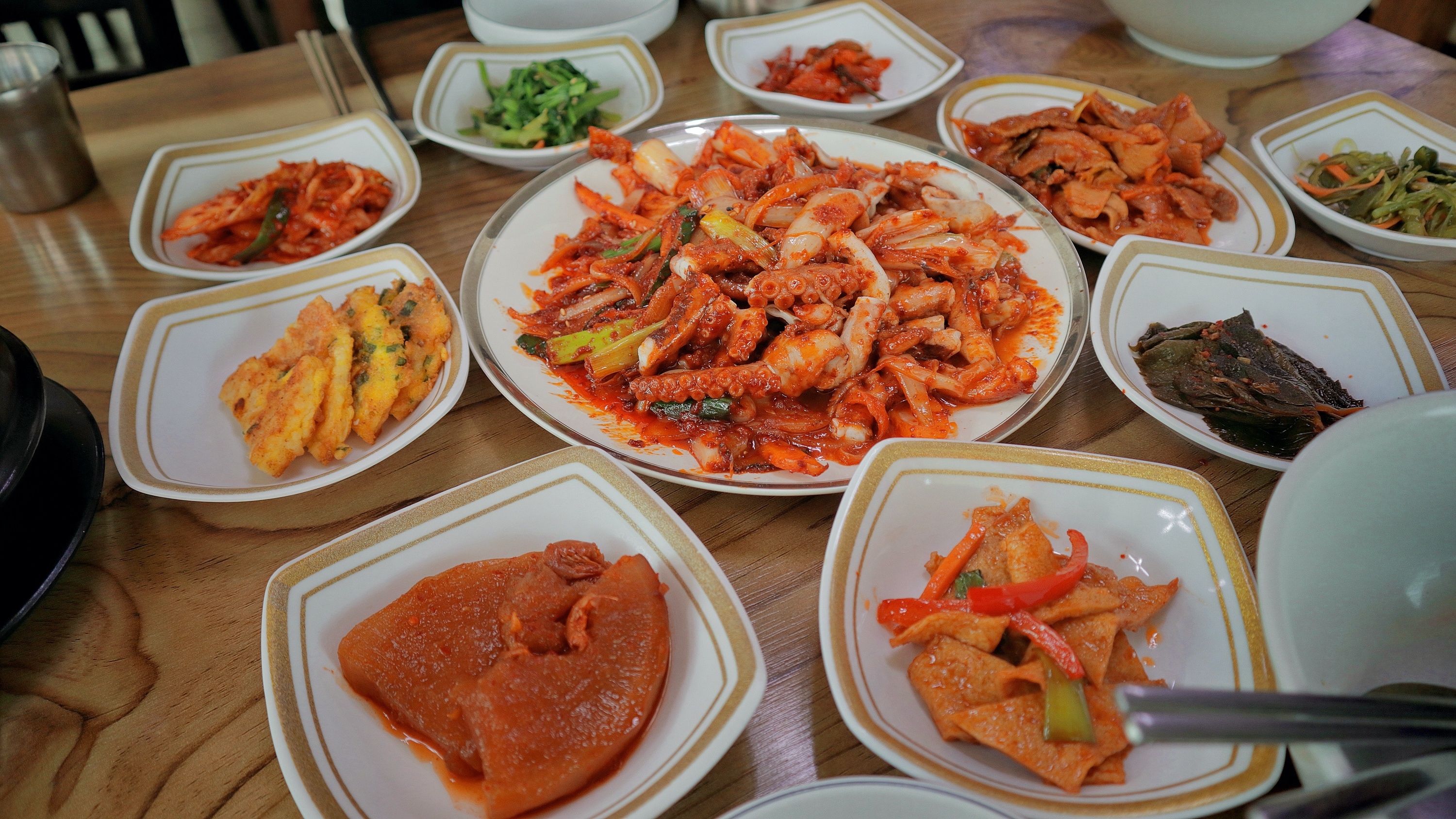 백반집은 밑반찬이 맛있고 밥도둑이어야하는데 여기가 딱 그런 곳. 밑반찬 종류는 그렇게까지 많은건 아니지만 메인메뉴인 낙지볶음과 제육볶음을 제외하고서도 8찬이 나온다. 낙지볶음을 시키면 여기에 청국장과 밥을 따로 주기 때문에 매우 푸짐한 한 상차림을 즐길 수 있다. 밑반찬이 정말 맛있어서 내가 딱 좋아하는 식단이다.