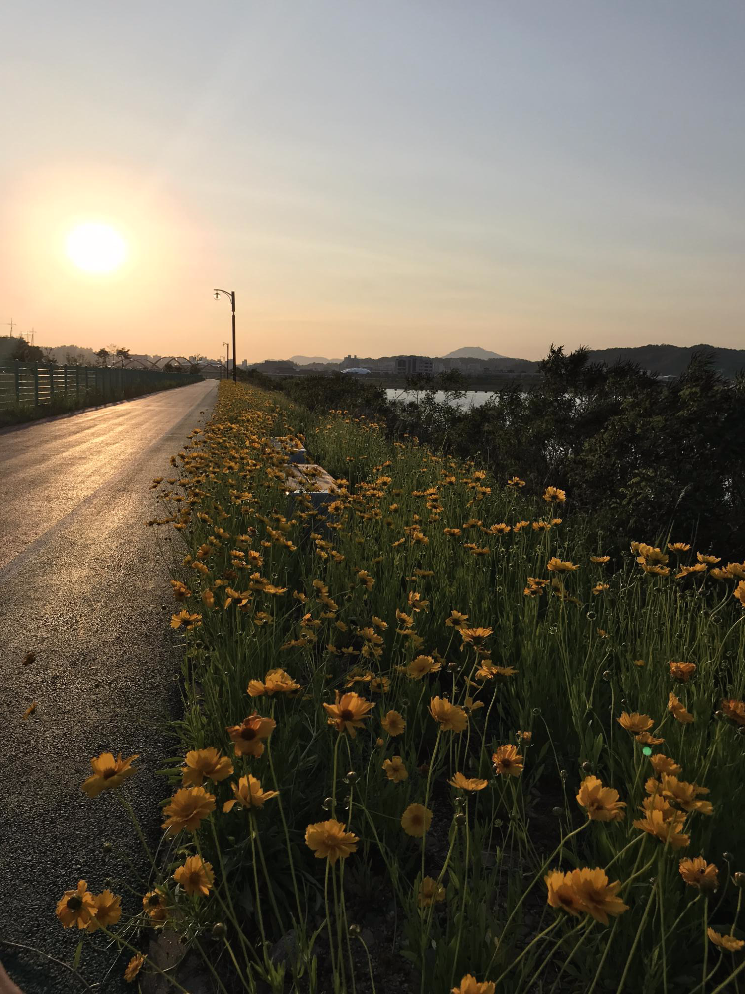 이름모를 꽃들도 여기저기에 피어있다. 저녁인데도 운동을 하는 시민분들, 연인들과 함께 걸으며 즐거운 시간을 보내는 젊은이들, 자전거를 타는 사람 등 각양각색의 사람들을 스쳐 지나가며 볼 수 있었다. 즐거운 산책 시간. 날씨가 좋아서 너무 좋았다. 아름다운 안동의 낙동강변이다.