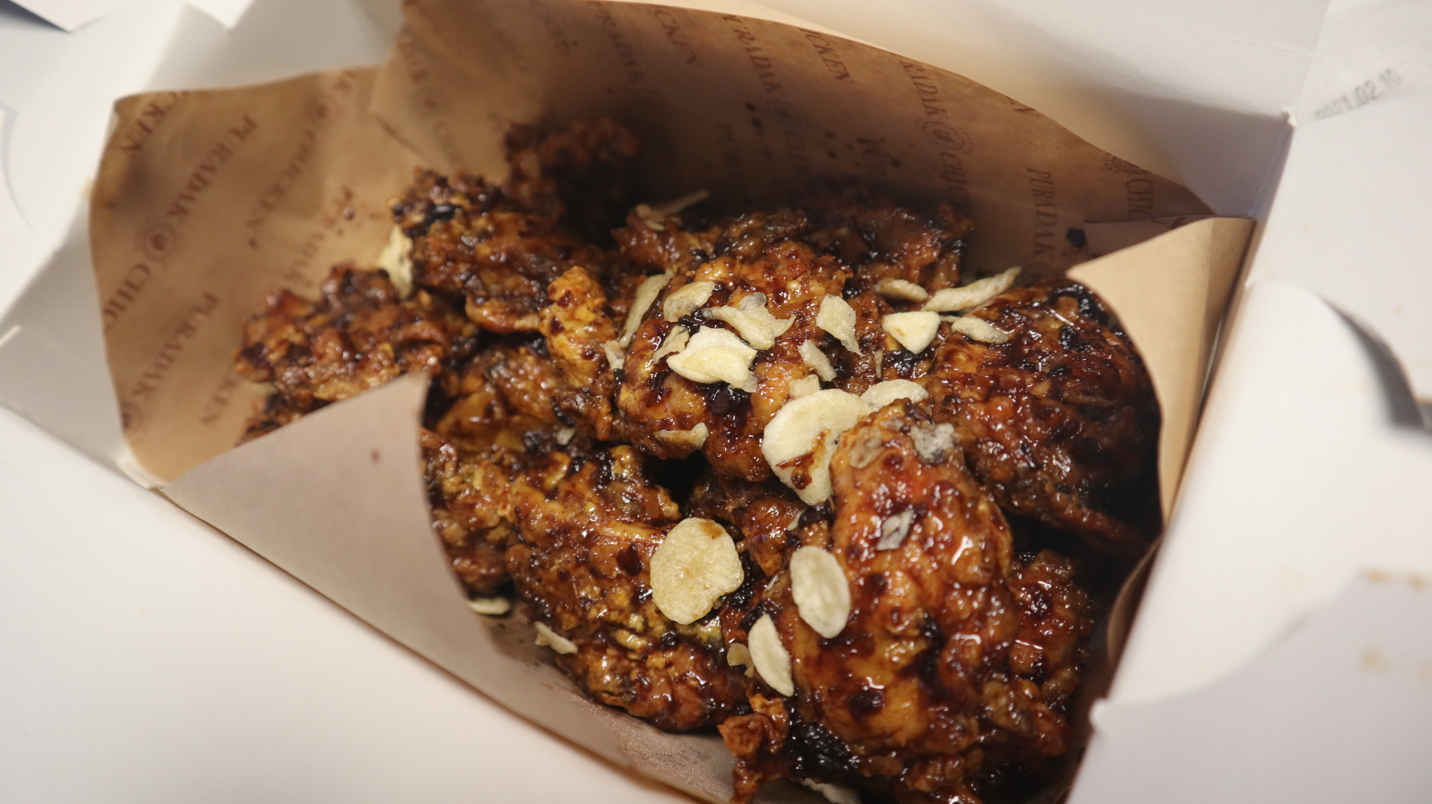 순살로 주문했고 소스는 블랙알리오였다. 푸라닭 시그니처인듯.