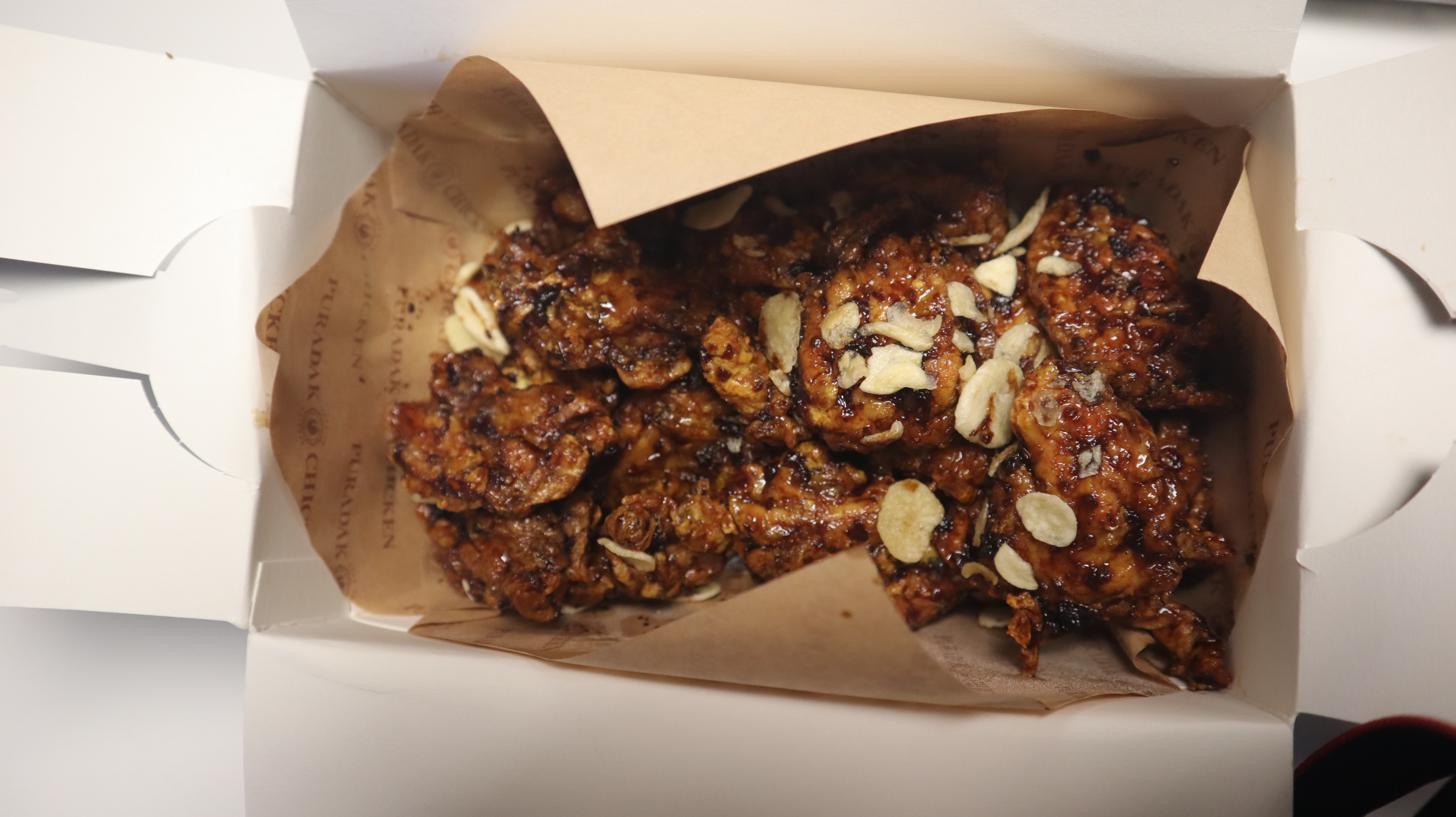 순살로 주문했고 소스는 블랙알리오였다. 푸라닭 시그니처인듯.