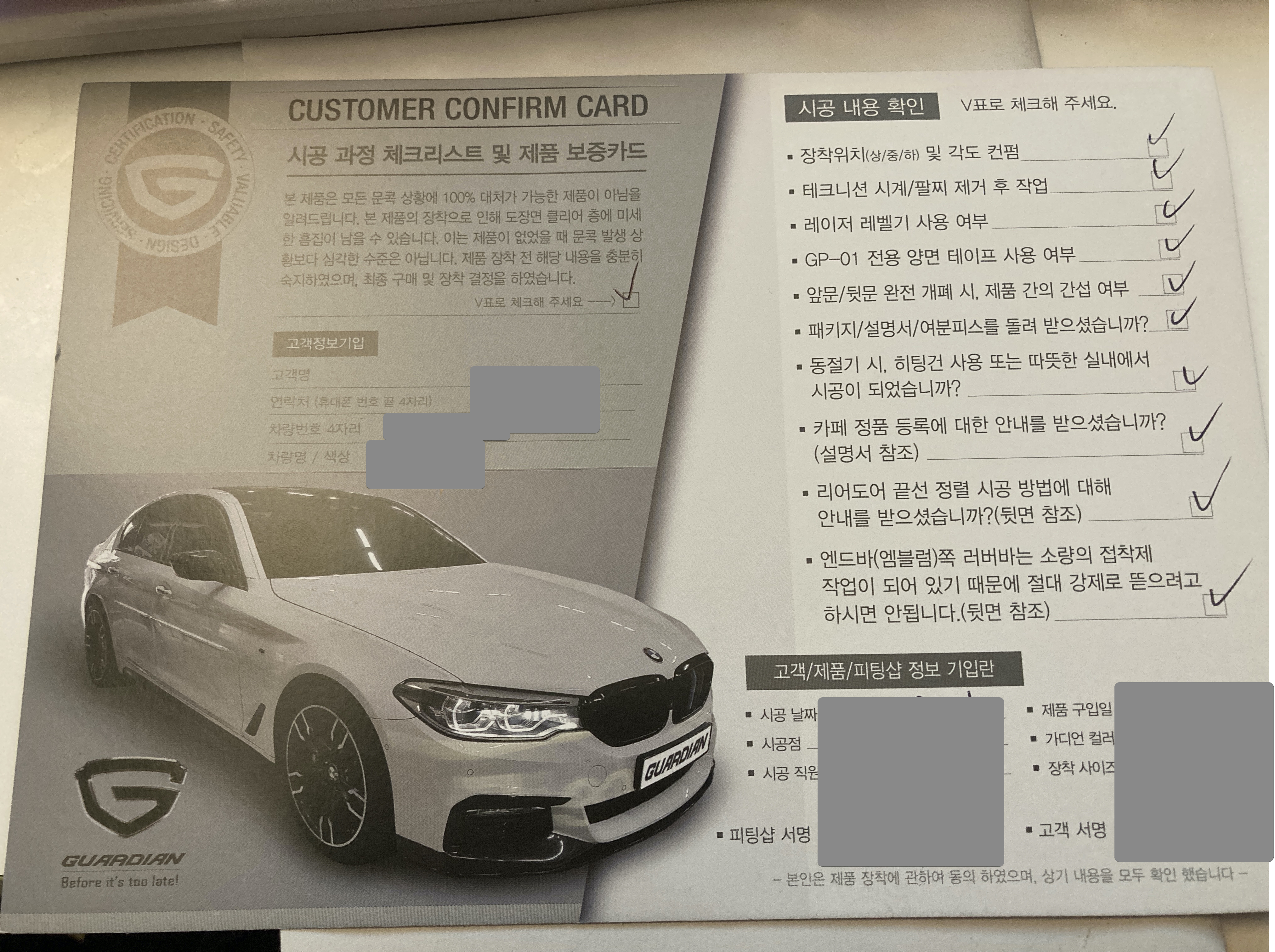 차에 가디언 도어가드를 설치하면 위 사진처럼 간단한 설명서같은 팜플렛 같은걸 준다. 이걸 활용해서 정품 등록을 해야하는데 처음 받을 때 어떻게 하냐고 물어보니 사장님 본인도 자세히는 모른다고해서 직접 찾아보기로 하고 진행해봤다.