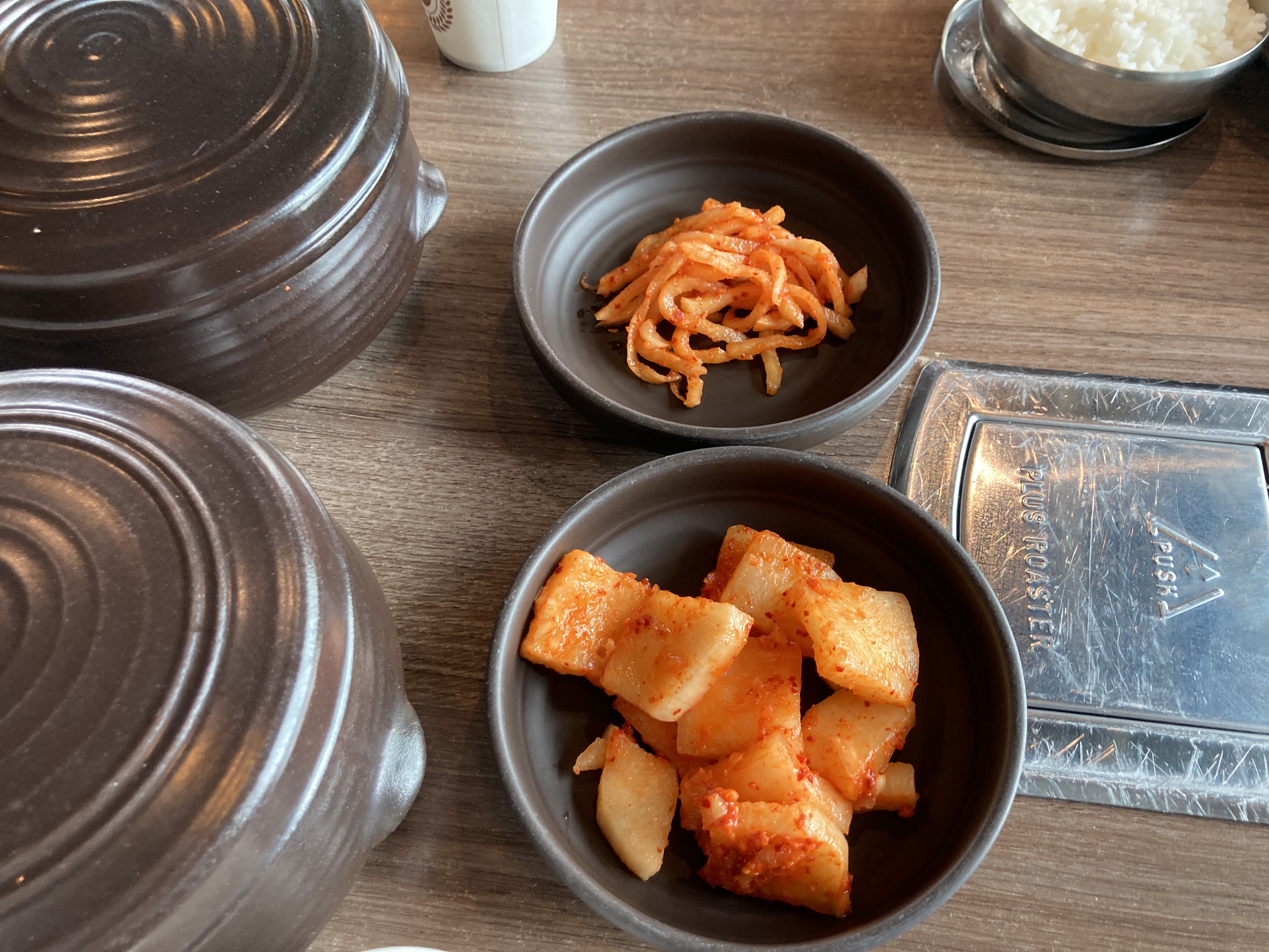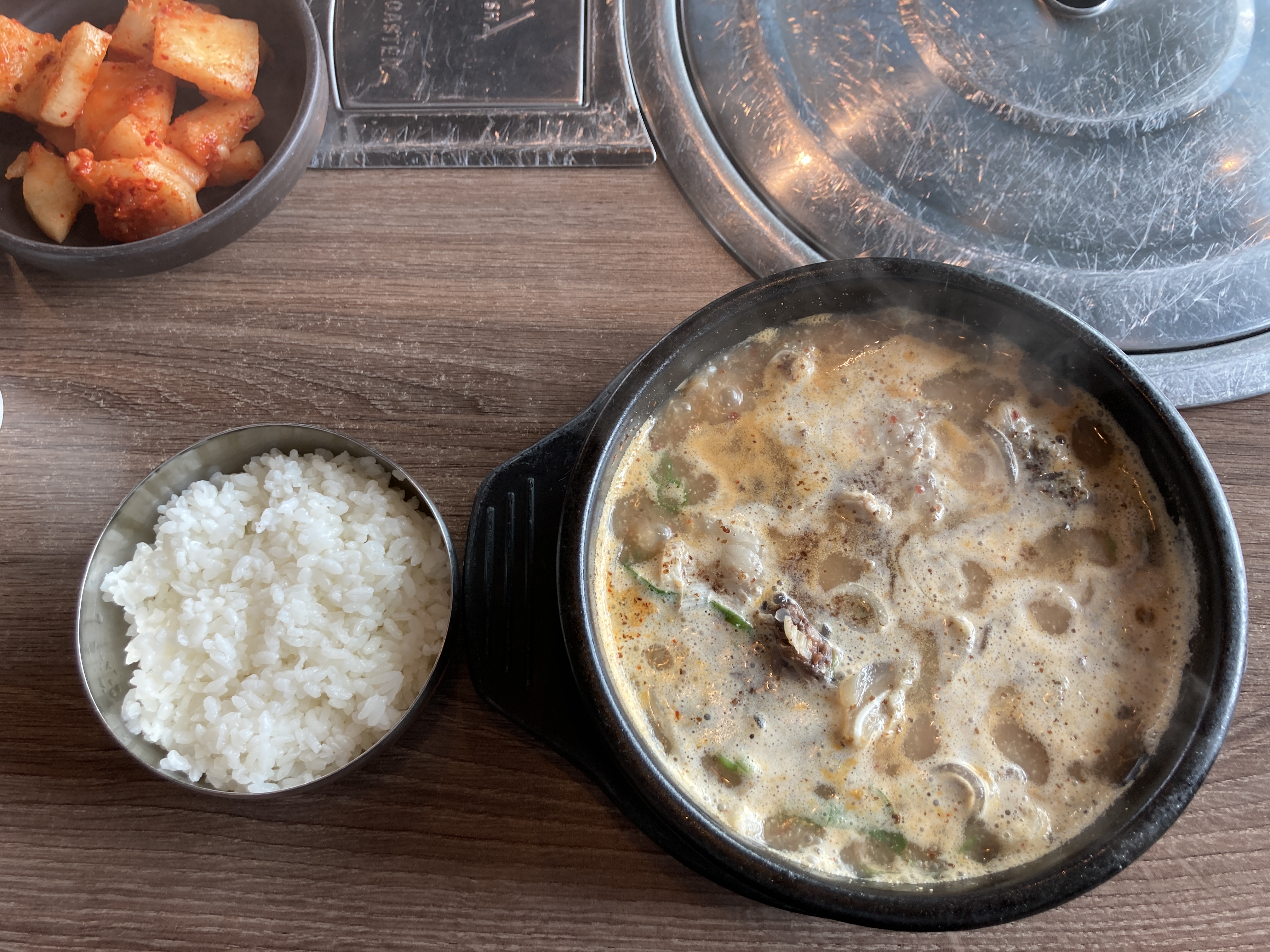 밑반찬은 깍두기랑 무가 나오는데 고추나 양파, 쌈장같은 전형적인 국밥 반찬이 없어서 이 부분은 나는 좀 아쉬웠다. 양파 좋아해서 ㅎㅎ 근데 속 쓰려서 대충 먹고 남겼다... 돈 아까워 ㅠㅠ 맛은 괜찮았다. 안에 들어있는 순대가 특히 맛있었음 ㅋㅋ