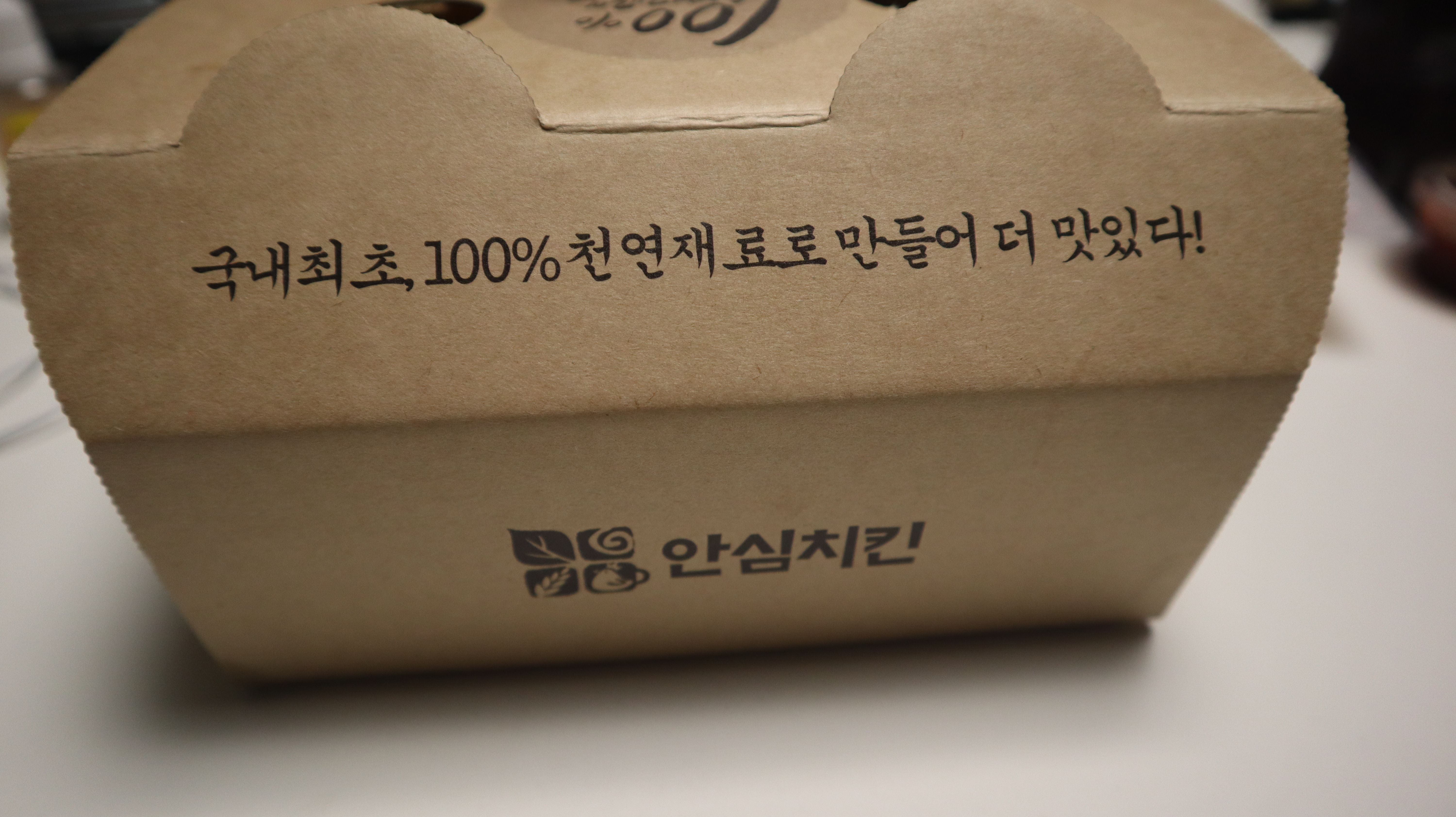 안심치킨 쌀 후라이드 순살. 순살이긴 하지만 다릿살 100%는 아니었고 중간중간에 퍽퍽살도 조금 섞여 있었다.