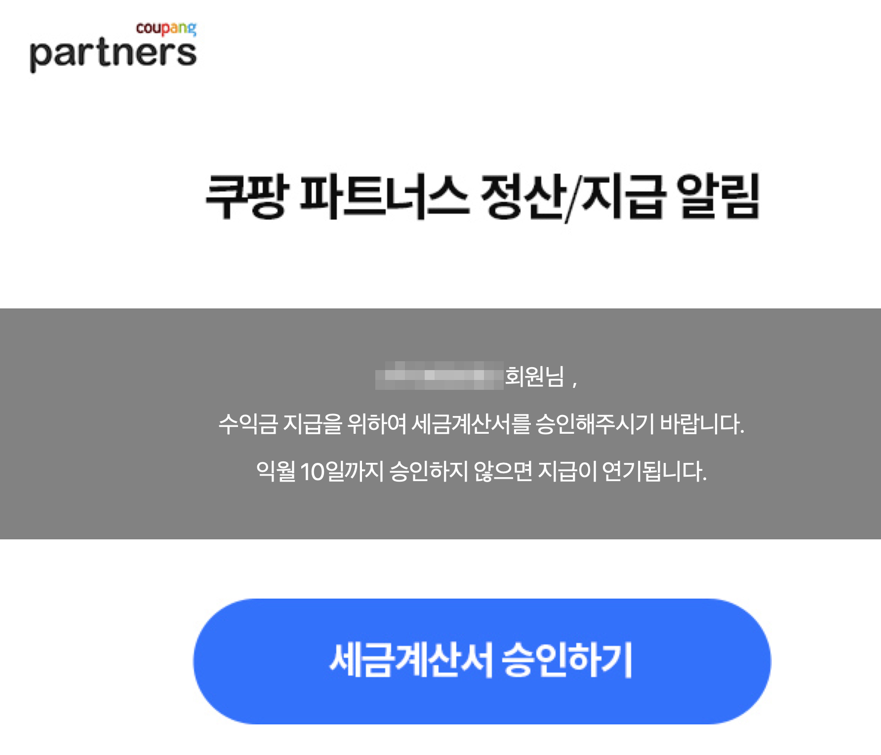 나는 쿠팡파트너스 활동은 거의 하지 않지만, 그냥 기존에 내돈으로 주고 산 상품들의 기록을 블로그에 남기면서 소소하게 몇 건 정도 쿠팡 파트너스 링크를 넣어두었는데 오랜 시간이 흐르다보니 정산이 될 시점이 와서 이메일 한 개를 받게 된다. 금액이 그다지 크지 않은 돈이지만 어쨌거나 수익은 수익이므로 세금계산서를 승인하려고 했다.