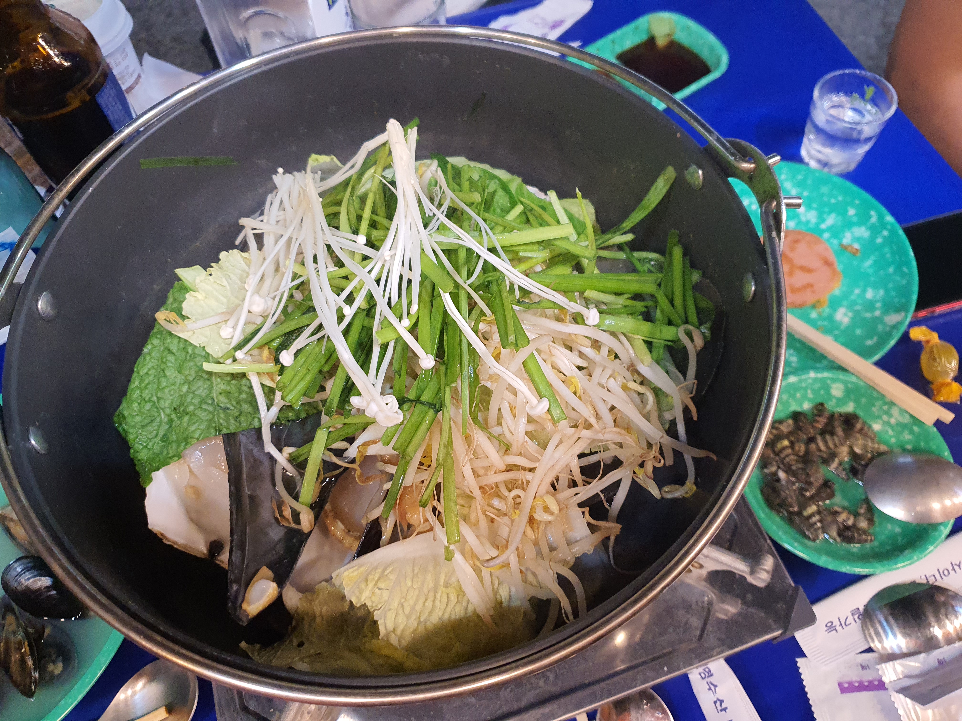 조개찜. 안에 전복이랑 가리비, 키조개 등 이런저런 조개들이 들었고 야채도 맛있는 편이다. 양이 좀 적다 ㅠㅠ