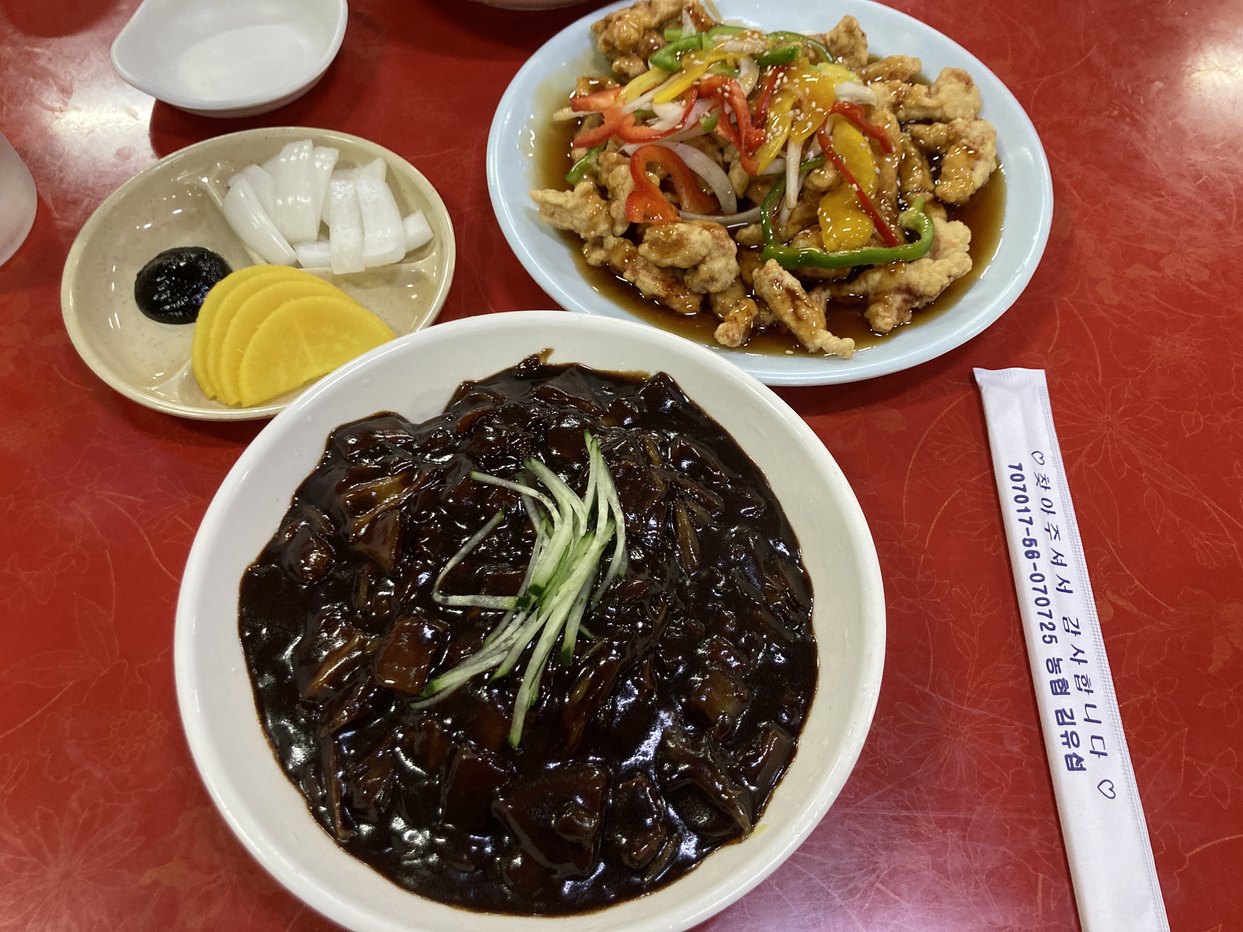 오후에 시간나서 지인과 함께 부동산을 여기저기 둘러보았다. 현장 실사도 가보고 강 건너에서 멀리서 예상 지역도 둘러보고 그랬다. 부동산 둘러보고나서 저녁 먹을 시간이 되어서 그냥 가까운 곳에 금룡손짜장이 보이길래 들어가서 식사를 하였다. 메뉴판에는 다양한 메뉴들이 있었는데 부동산엔 짜장면이지! 하면서 짜장면 세트 주문했다.