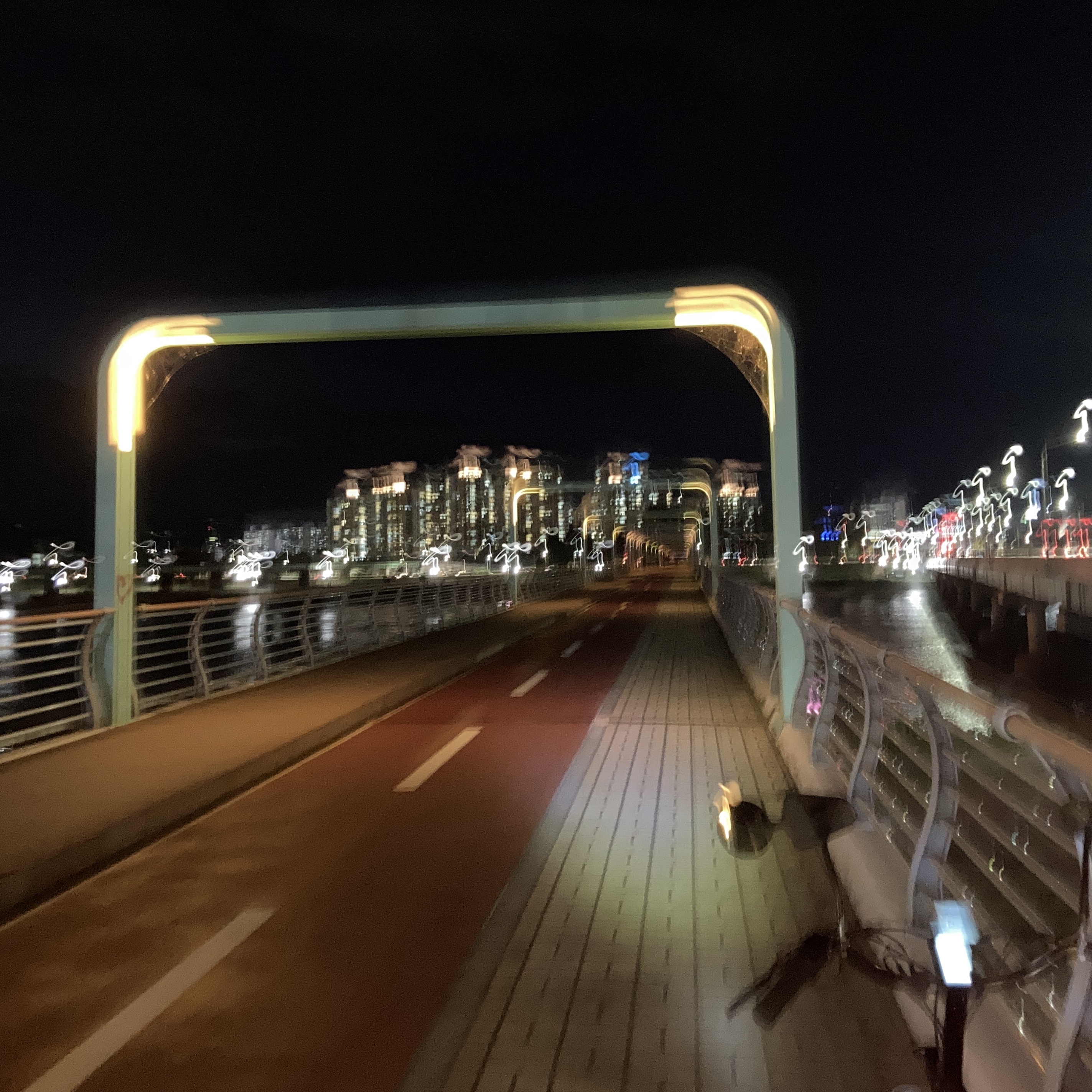 멀리서 바라보면 정말 아름다운 강변 풍경과 자전거 길. 이쪽 방향은 야간에 양쪽에 조명이 있어서 그래도 조금 괜찮지만, 더 안쪽으로 들어가면 매우 어두워서 라이트 필수이고 그래도 좀 어두워서 조심하면서 타야한다.