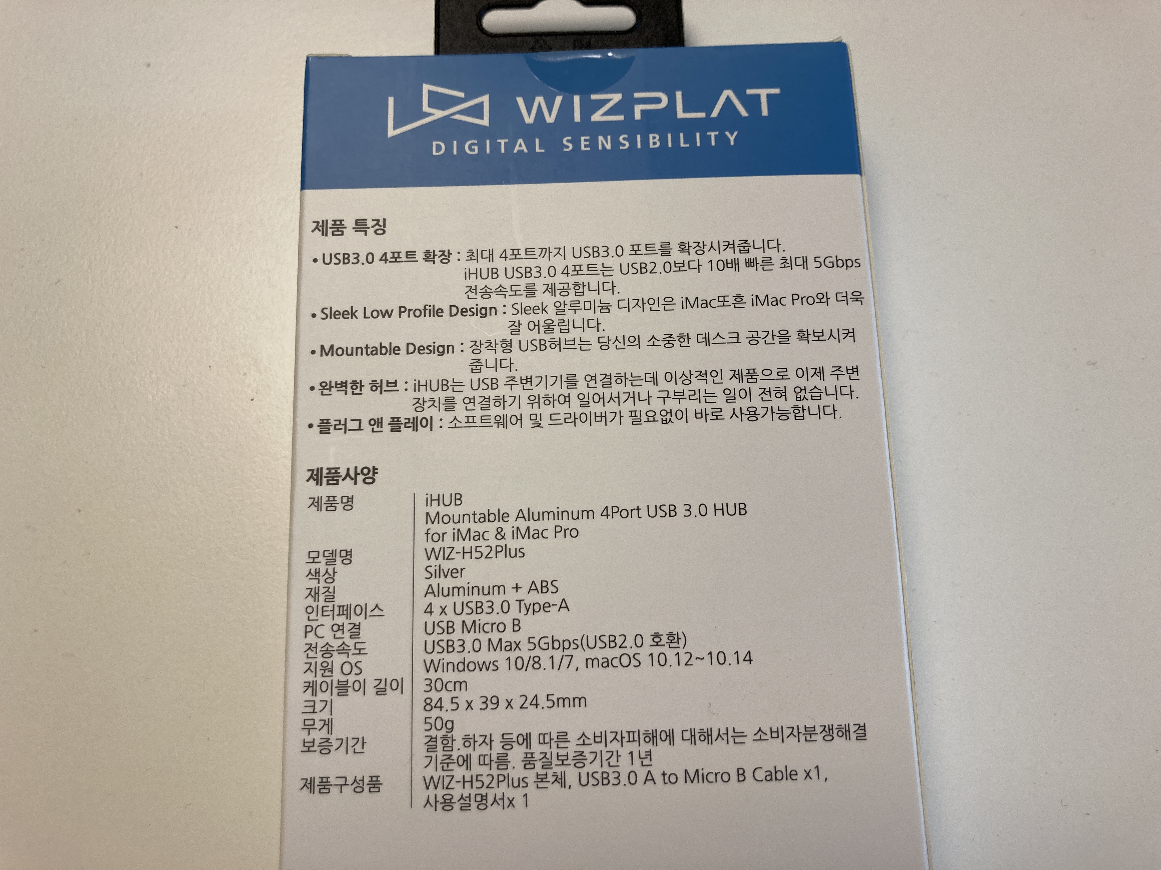 아이맥 전용 USB허브 위즈플랫 WIZ-H52Plus 구매 설치