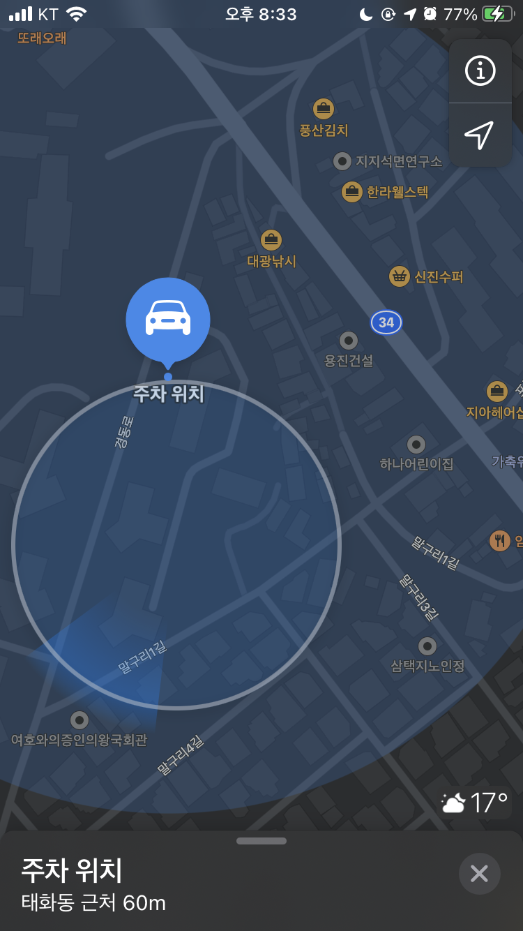 지도 앱이 조금 업그레이드 되었다는 설명이 있길래 기대하였는데, 일단 주차 위치를 지도에 표시해주는건 좋았다. 예전에도 알림으로 알려주는 기능이 있었던걸로 기억하는데 이번에는 아예 차량이 등록되면서 자동으로 표시를 해준다. 그러나 지도 자체의 경우 건물명이 아주 오래전 건물명이 표시되는 등의 문제는 있어서 적극적으로 지도를 쓸만할 것 같지는 않아보인다.