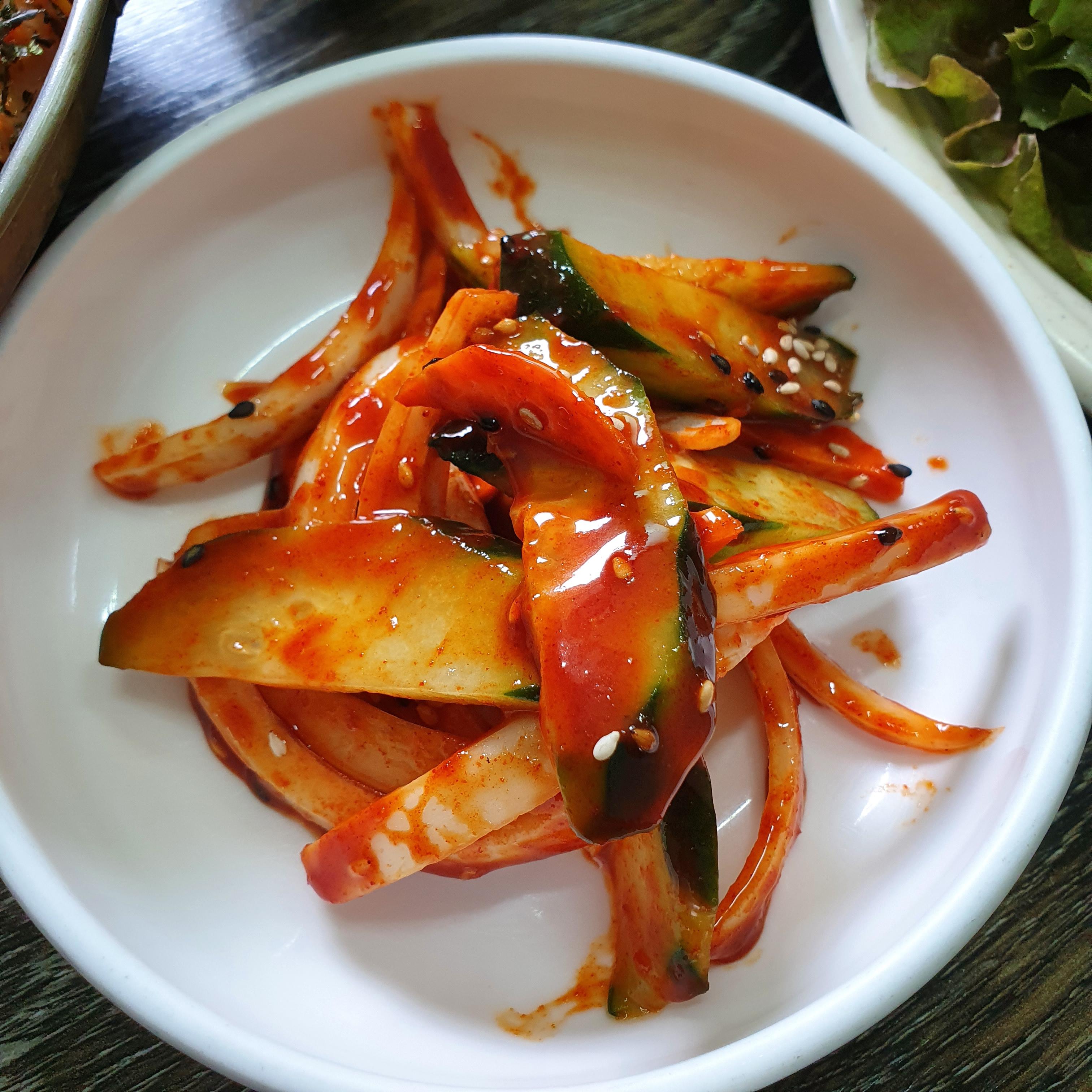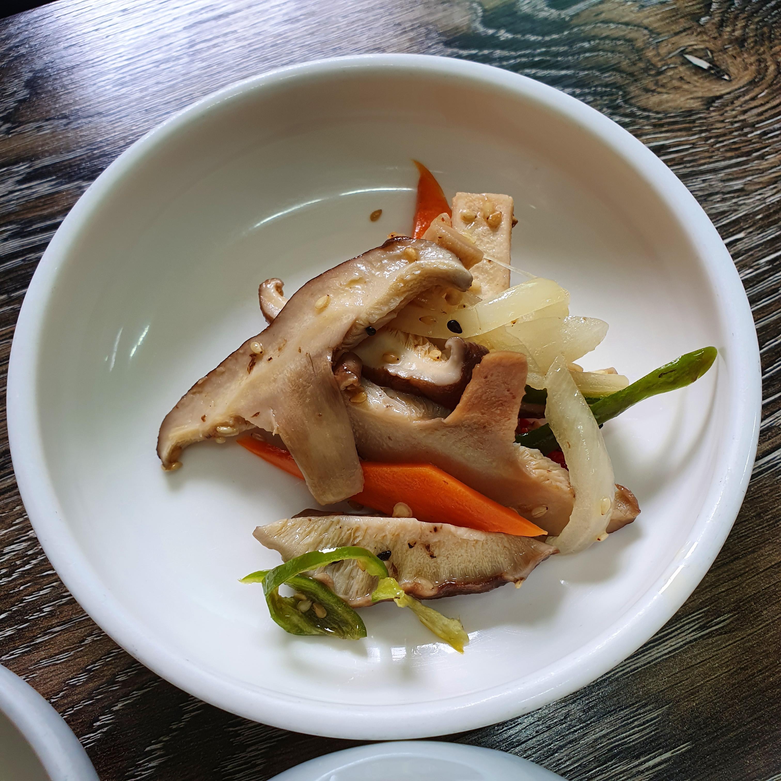 밑반찬들은 나물 종류들로 건강하면서도 간단하게 차려진다. 오이 진짜 맛있었다. 버섯도 굿. 의외로 김치에는 손이 잘 안가더라. 낙지볶음 자체에 어느정도 매운맛이 있어서 고추에도 손이 잘 안가게 됐다. 그런데 같이 주는 장물(칼국수용)과 된장이 진짜 레전드였다. 안동 전통식 스타일 ㅎㅎ 내 스타일 ㅎㅎ