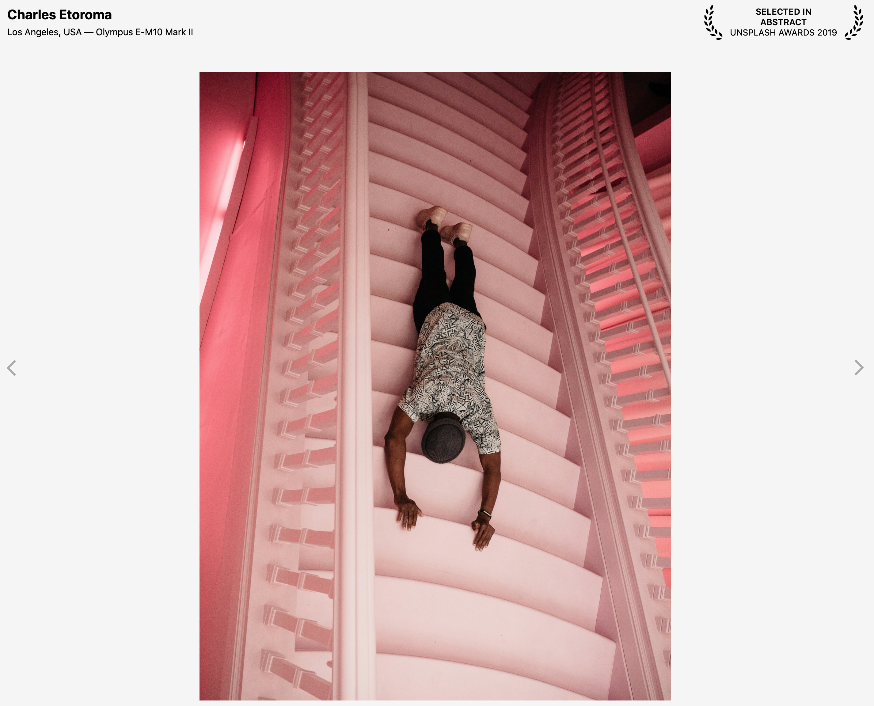 2019 unsplash award에서 수상작으로 꼽힌 이 사진을 보면 참 재미있다. 이 사람은 물구나무를 서 있는걸까 아니면 그냥 정상적으로 서 있는걸까? 작가는 왜 이런 구도를 찍었나? 등 다양한 이야기를 만들어낼 수 있는 부분이다. 이외에도 이와 비슷한, 이야기가 있는 사진들이 많아서 내가 추구하는 방향을 만드는데 영향을 많이 받는 편이다.