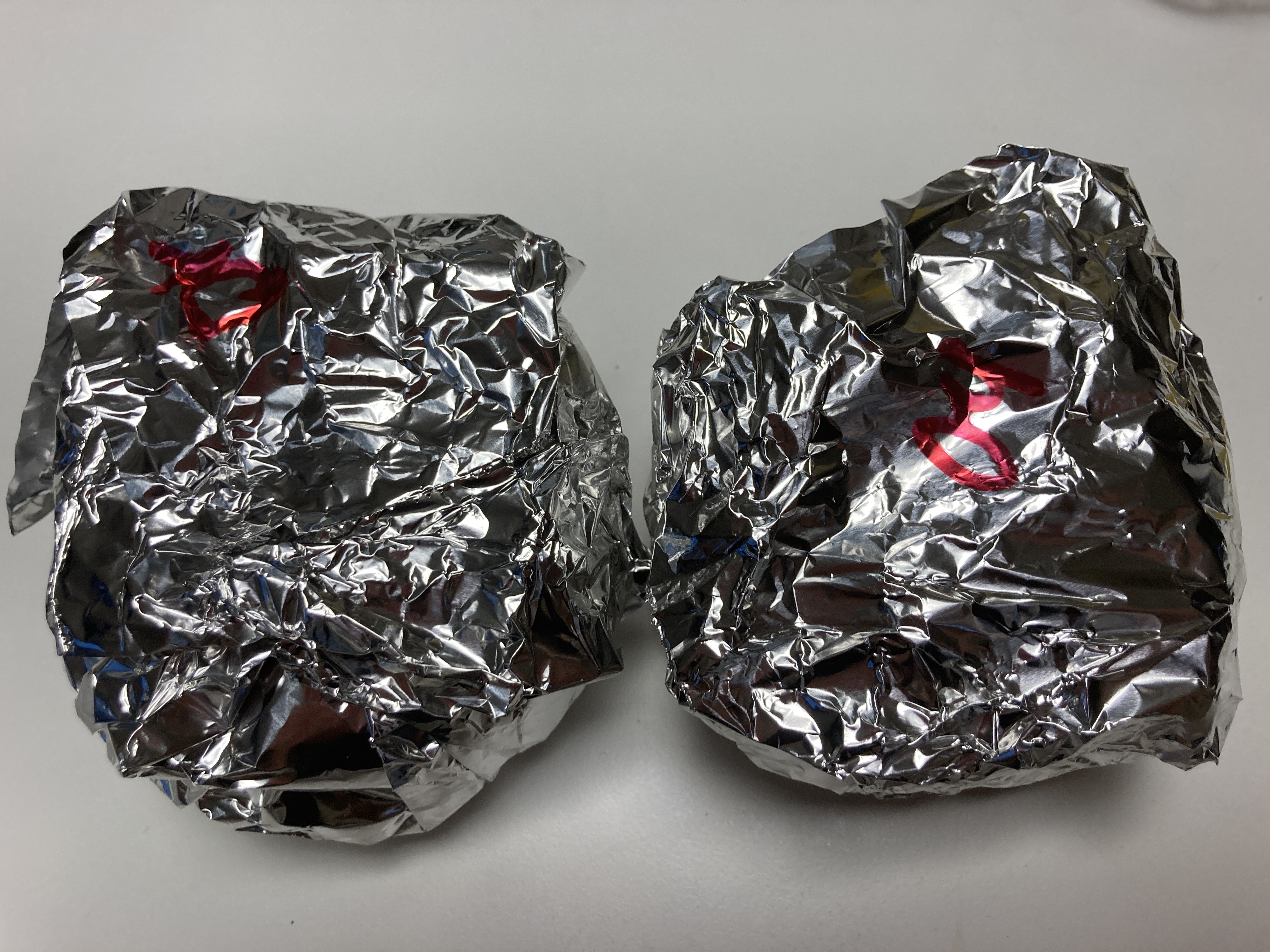 햄버거 두 개. 은박지에 포장되어 있다. 얼마전에 신라제과 갔을 때 옛날식 햄버거가 땡겨서 살까말까 고민했었는데 그 한을 여기서 푸는군.
