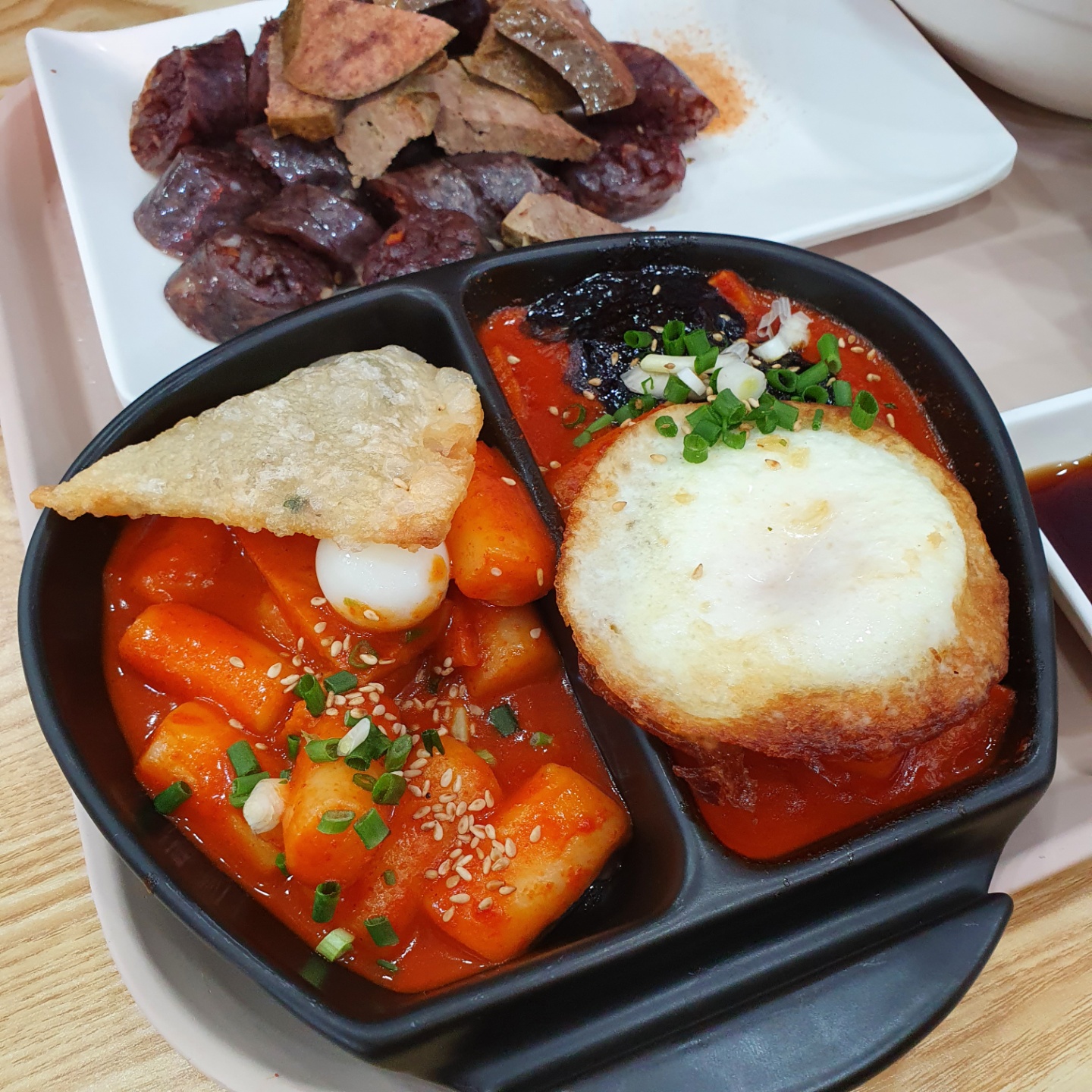 일단 떡볶이는 반반 떡볶이 ㅋㅋ 한쪽은 짜장떡볶이인데 호불호가 조금 갈리는 것 같다. 나는 호! 짜장소스랑 떡볶이 소스를 잘 섞어서 먹으니까 맛이 알록달록하다고 해야하나 다채롭다 ㅎㅎ 내 친구는 별로 안좋아하더라. 내가 다 먹음 ㅋㅋ