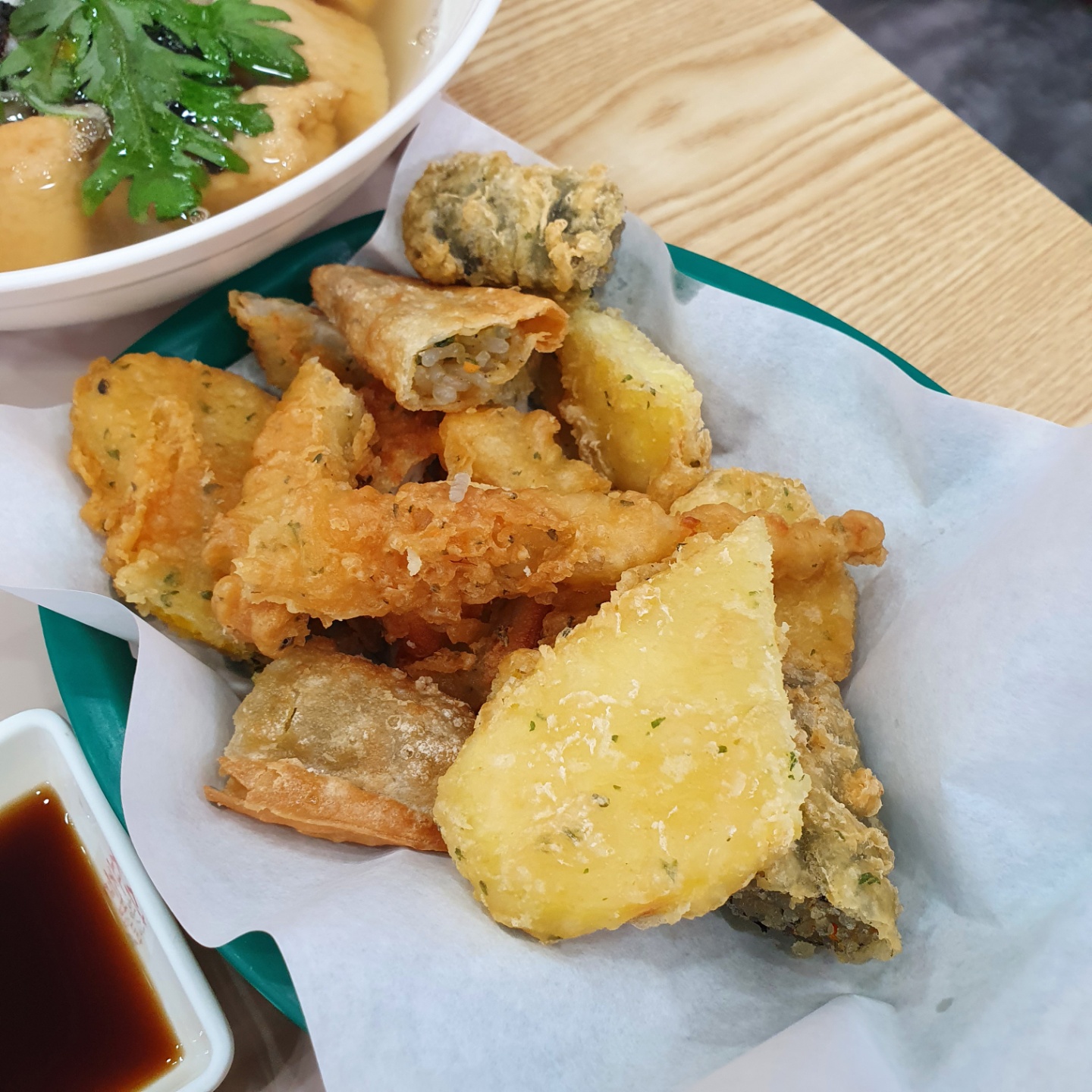 튀김. 엄청 뜨겁게 나와서 처음에 먹을 때 혀 데일뻔 ㅋㅋ 김말이, 오징어튀김 등 여러가지 들어있다. 간장도 찍어먹고 떡볶이 국물도 찍어먹고 !