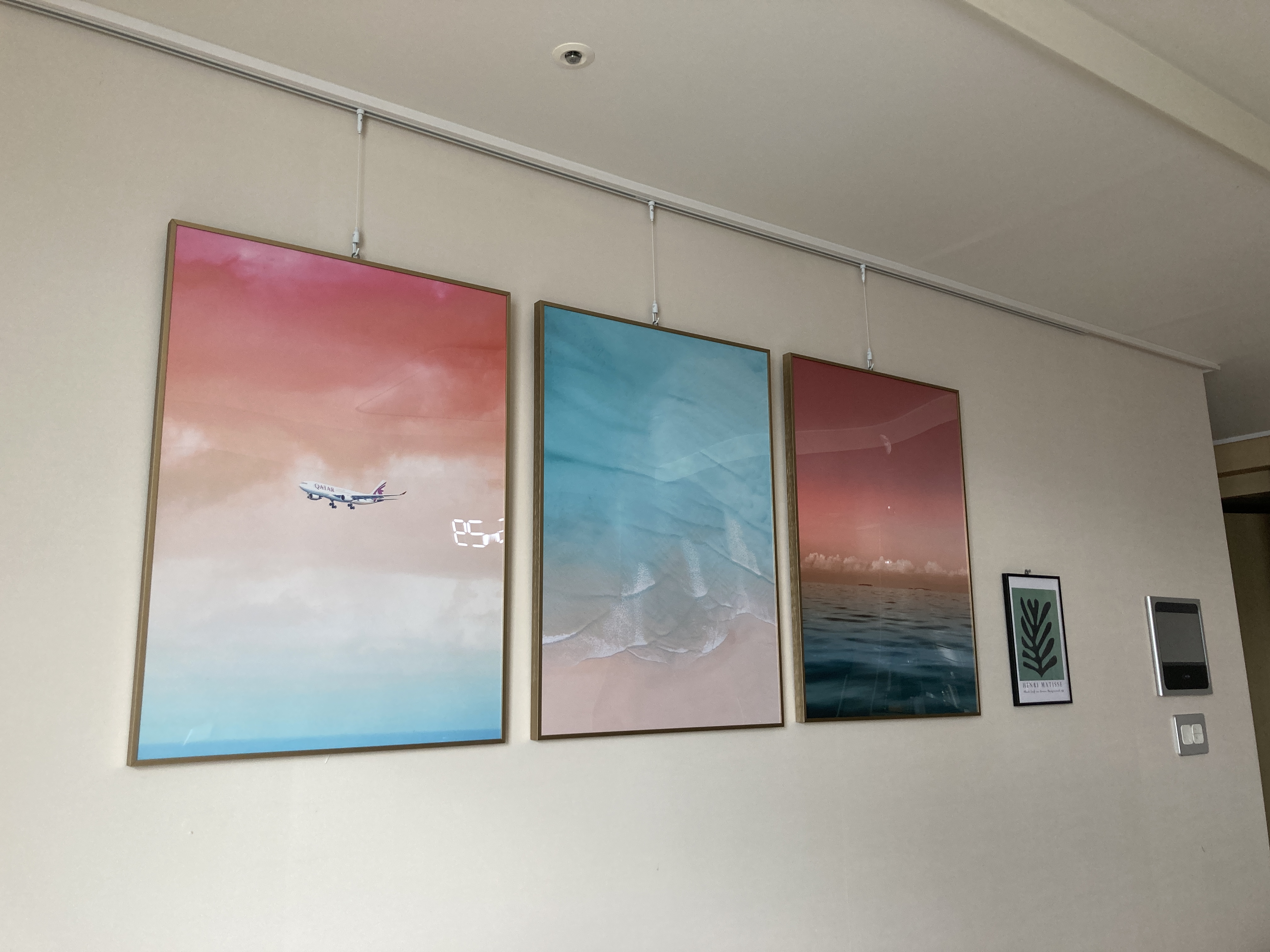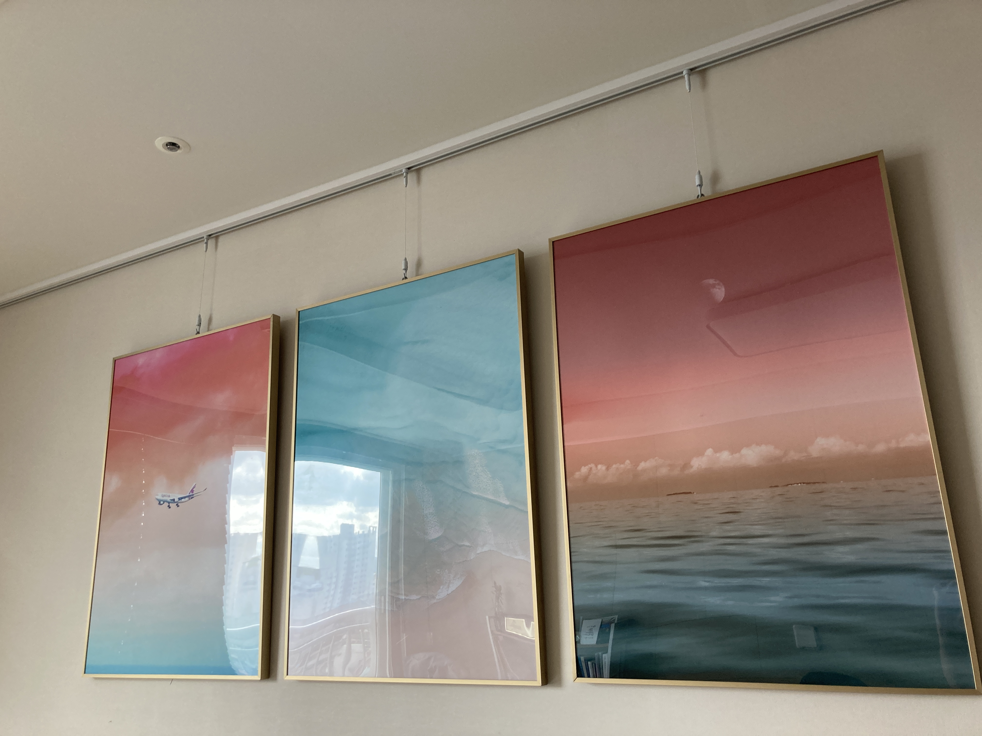 이번에 가을을 맞아 어떤 그림으로 바꿀까 고민하다가 핑크색과 스카이색이 조합된 그림들이 몇 개 있길래 고심에 고민을 거쳐 조합을 골랐다. 에덴미술의 경우 예쁜 그림들이 무수하게 많이 있고 상세페이지에서 전문가가 정해둔 그림 조합이 있지만, 나는 내 마음대로 조합해보고 싶은 욕심이 많아서 A에서 하나를 사고, B에서 하나를 사고... 하는 식으로해서 색상이 통일되거나 분위기가 얼추 어울리는 것들로 조합해서 써보고 있다.
