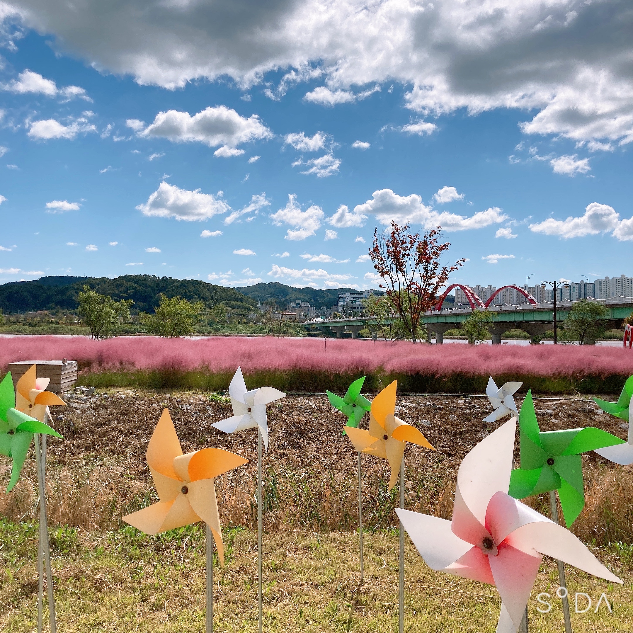 핑크뮬리 단지를 그냥 지나칠 수 없어서 자전거를 모델삼아 한 컷.