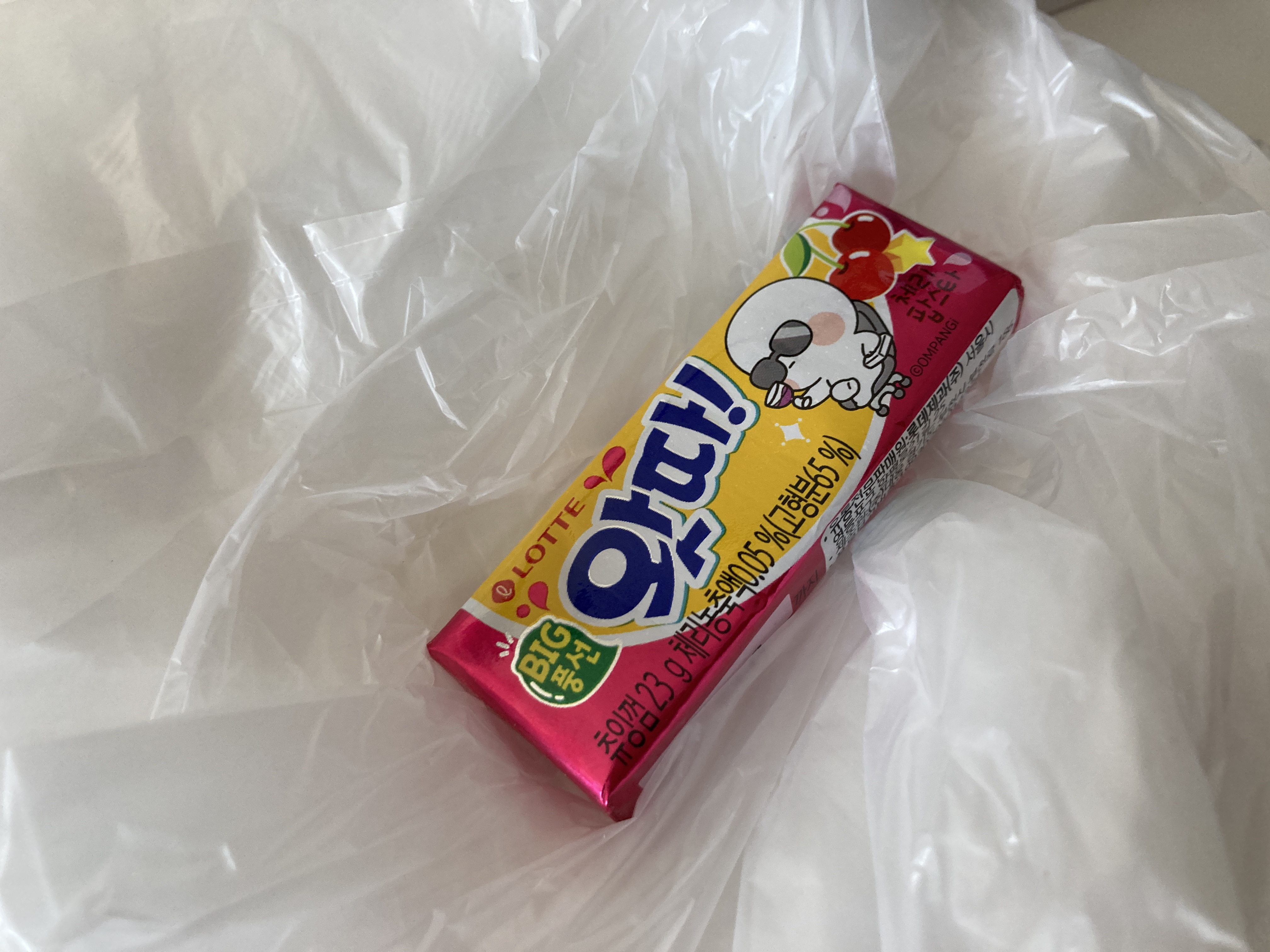 중간에 껌도 한 통 넣어주셨다. 하지만... 나는 껌을 잘 먹지 않는다는거...ㅋㅋ 그리고 배달될 때 무슨 비닐같은걸 같이 주던데 이건 어떤 용도인지 모르겠다. 아마 바닥이나 테이블에 까는 용도일걸로 추측 중.