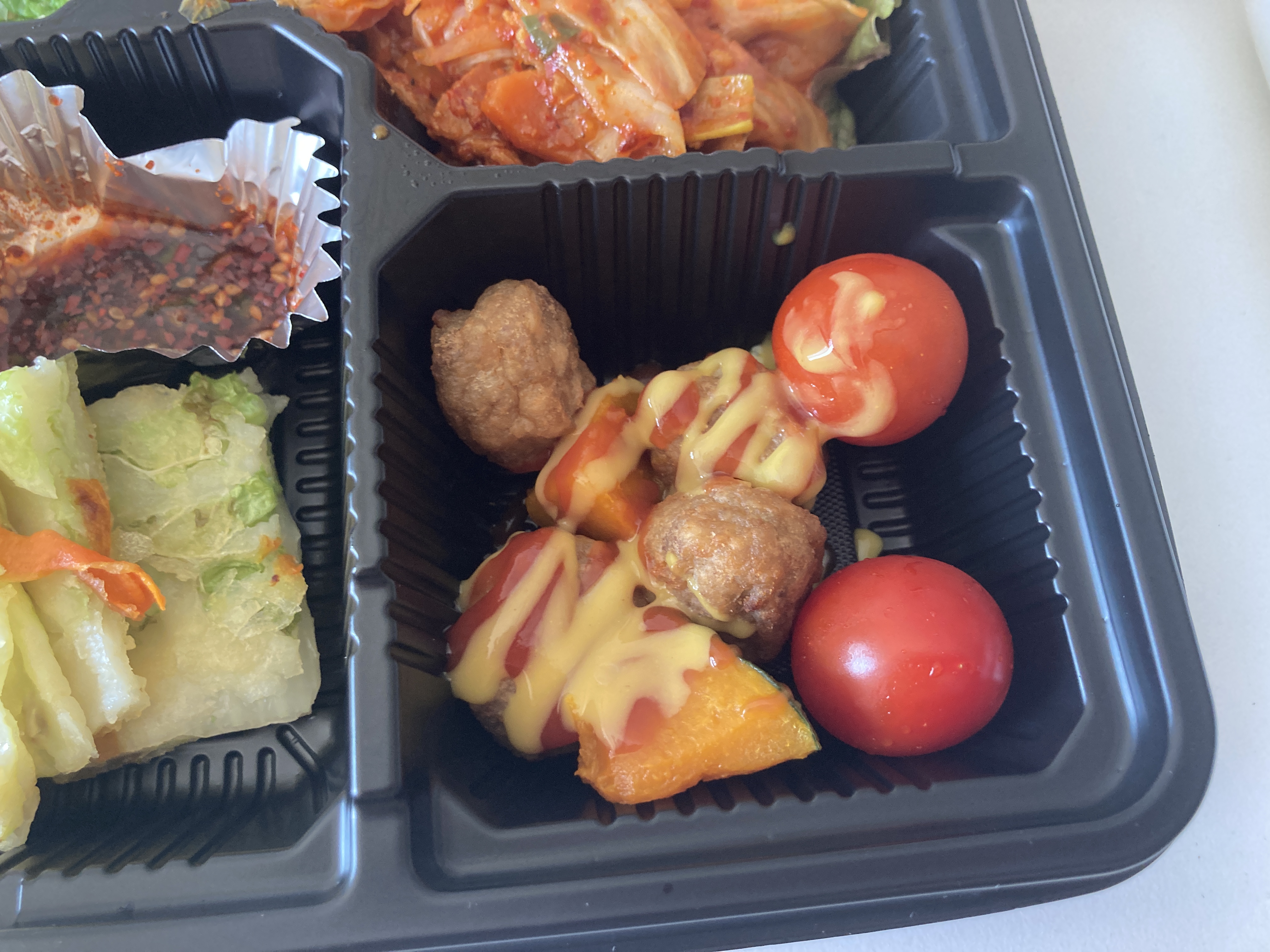미트볼도 들었고 단호박도 들었고 특이하게 오늘은 방울토마토도 두 개 들었더라 ㅎㅎ