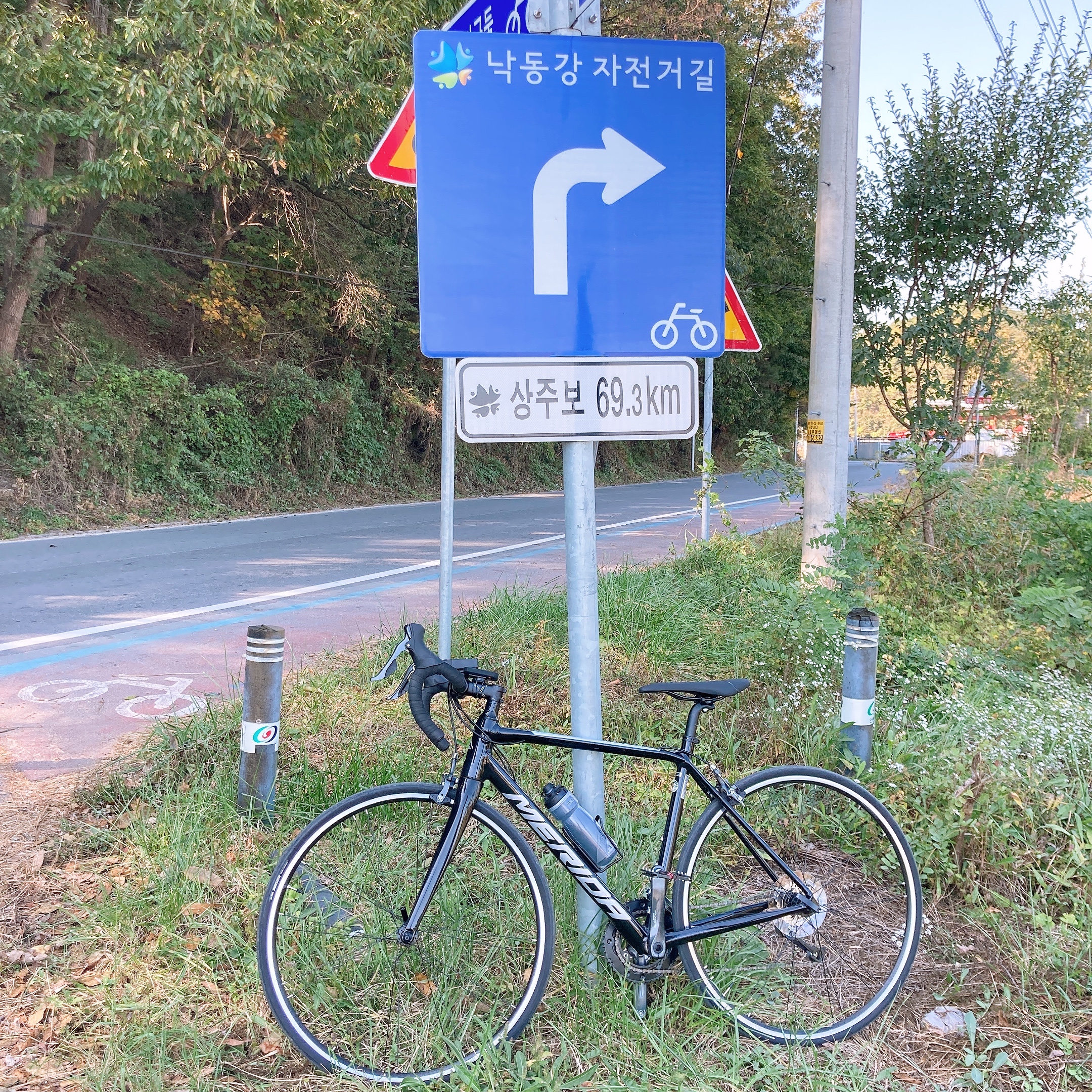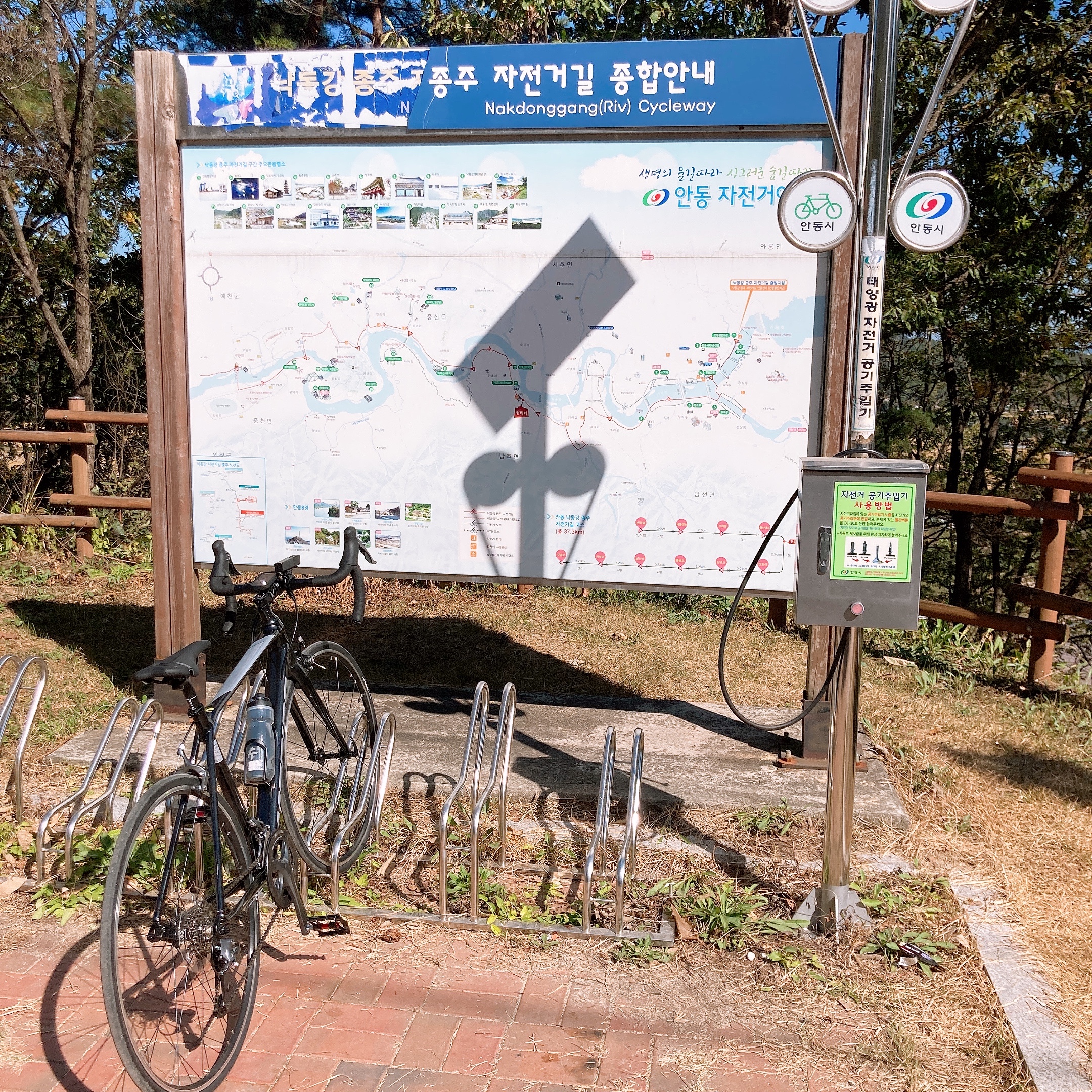 단호샌드파크에 가기 직전에 쉼터가 있다. 여기에는 종종 낙동강 길을 종주하시는 라이더분들이 쉬고 계실 때도 있는데 이 날은 나 혼자 밖에 없어서 자전거 세워두고 10분 정도 휴식했다. 오르막 올라오다가 너무 힘들어서 진짜 헉헉 거리면서 올라왔거든.