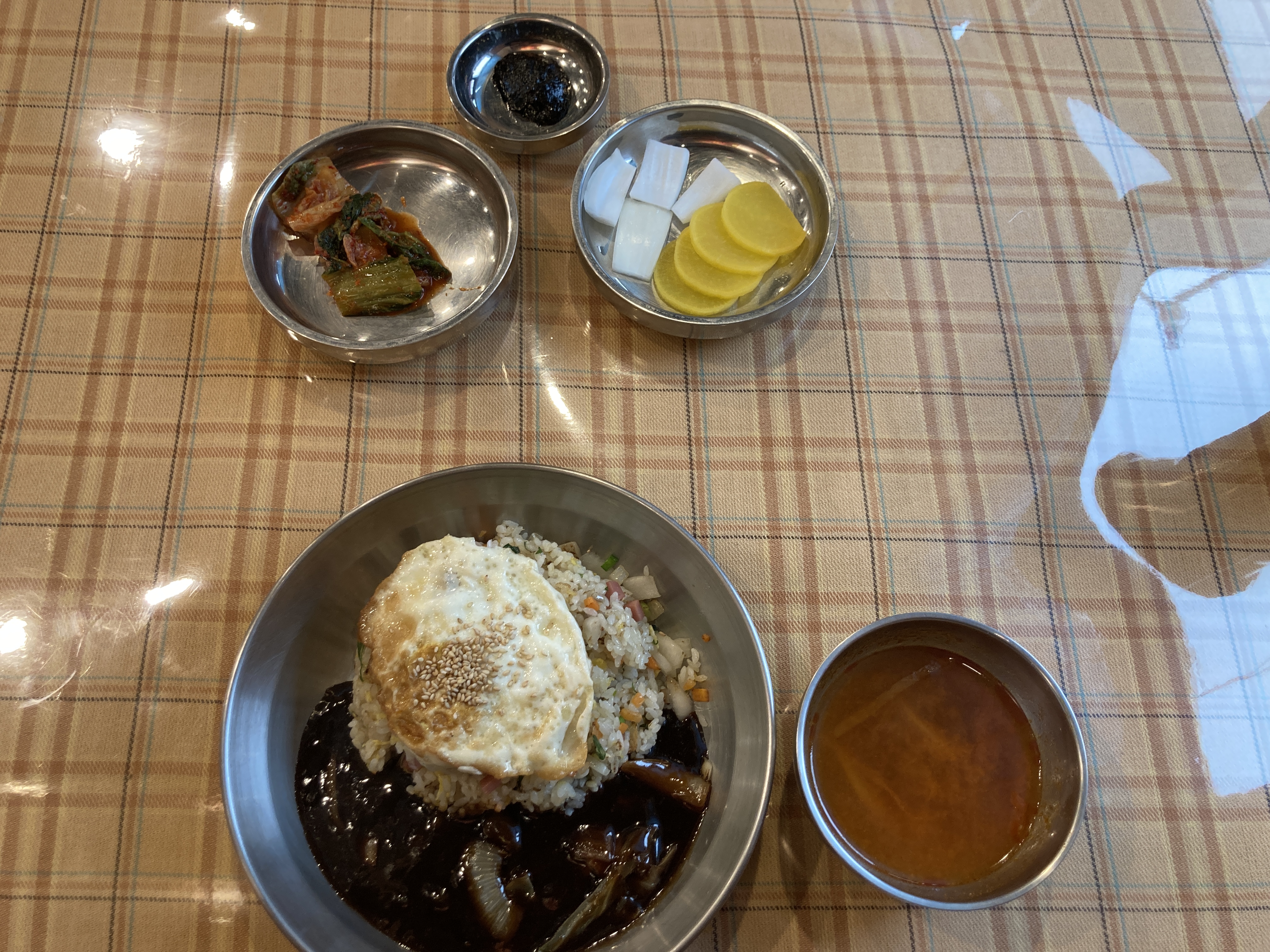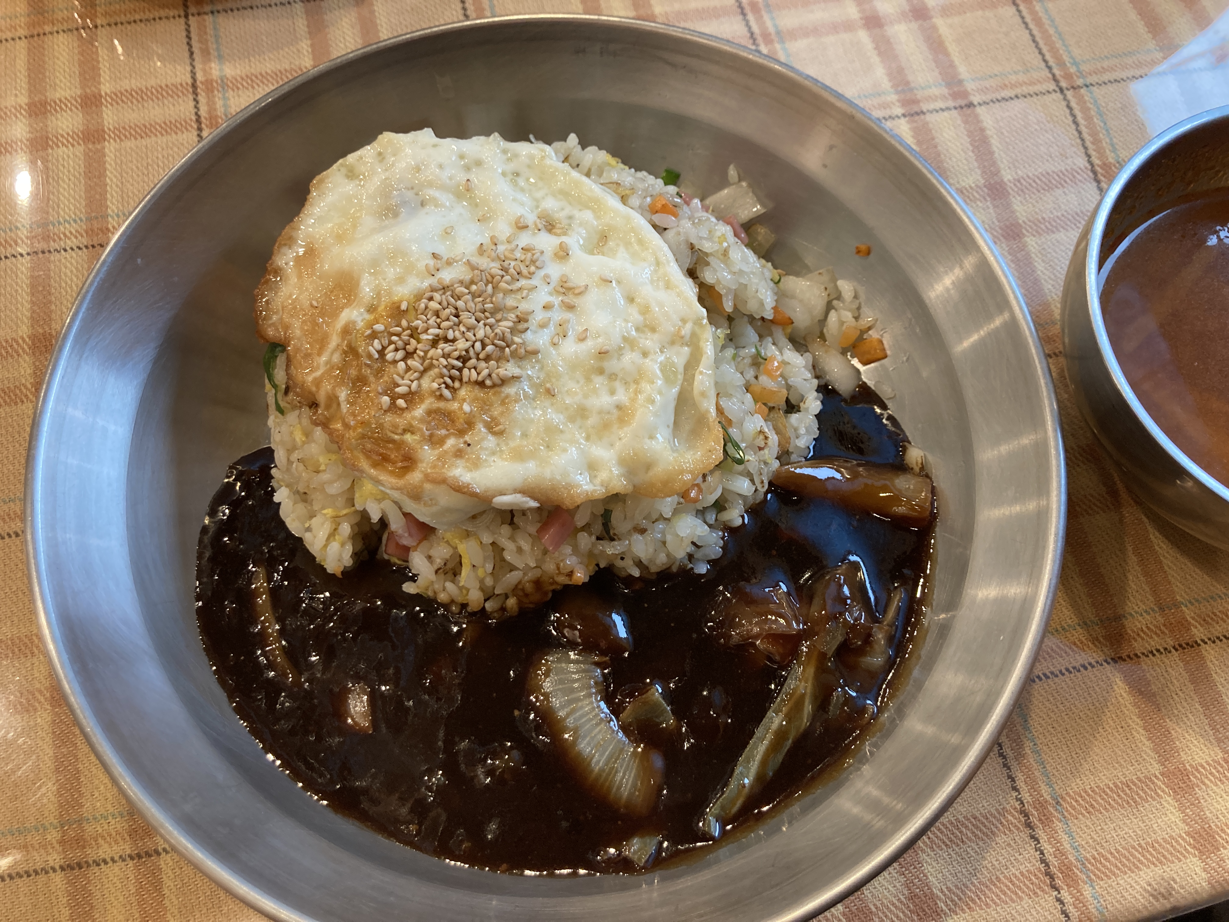 짜장면이 먹고 싶었지만 최근에 짜장면을 자주 먹은 까닭에 이번에 볶음밥을 주문해서 먹어보았다. 음식 주문이 많이 밀려있었던 탓인지 음식은 좀 늦게 나왔고 가게가 분주했지만 기다릴만했다. 볶음밥 퀄리티는 굿. 꼬들꼬들하면서도 맛있었다. 짜장 소스도 구수한게 괜찮았고. 같이 주는 짬뽕 국물은 찐한 맛 보다는 시원한 맛이었다. 다음엔 다른 메뉴 도전~!