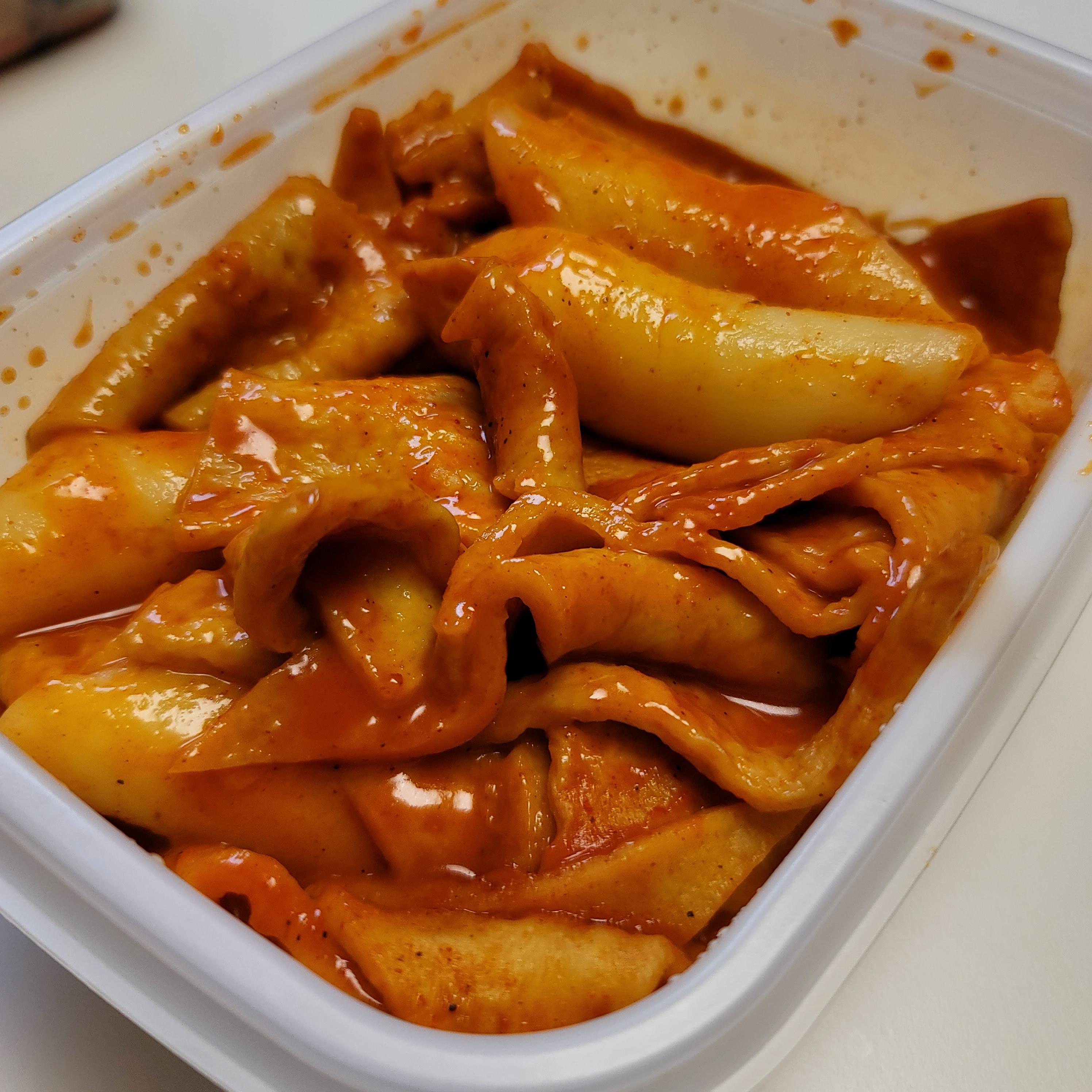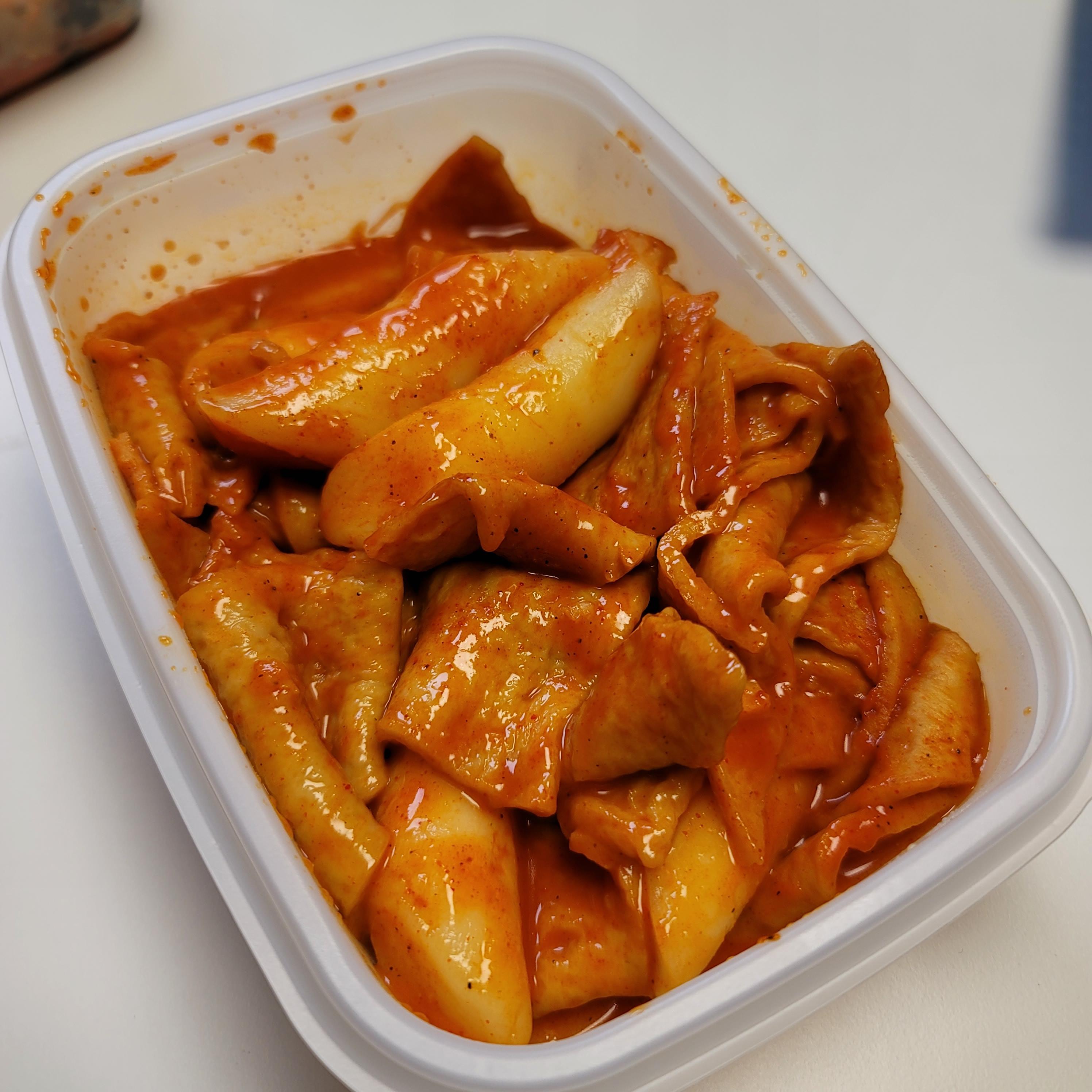 두번째 떡볶이. 메뉴 이름이 '진짜 떡볶이'인데 학교앞 추억의 매콤달콤칼칼 쌀떡복이라는 설명이 적혀있었다. 근데 진짜 학교 앞 추억의 떡볶이랑 매우 닮아있고 무엇보다 떡이 크고 맛있어서 대만족!