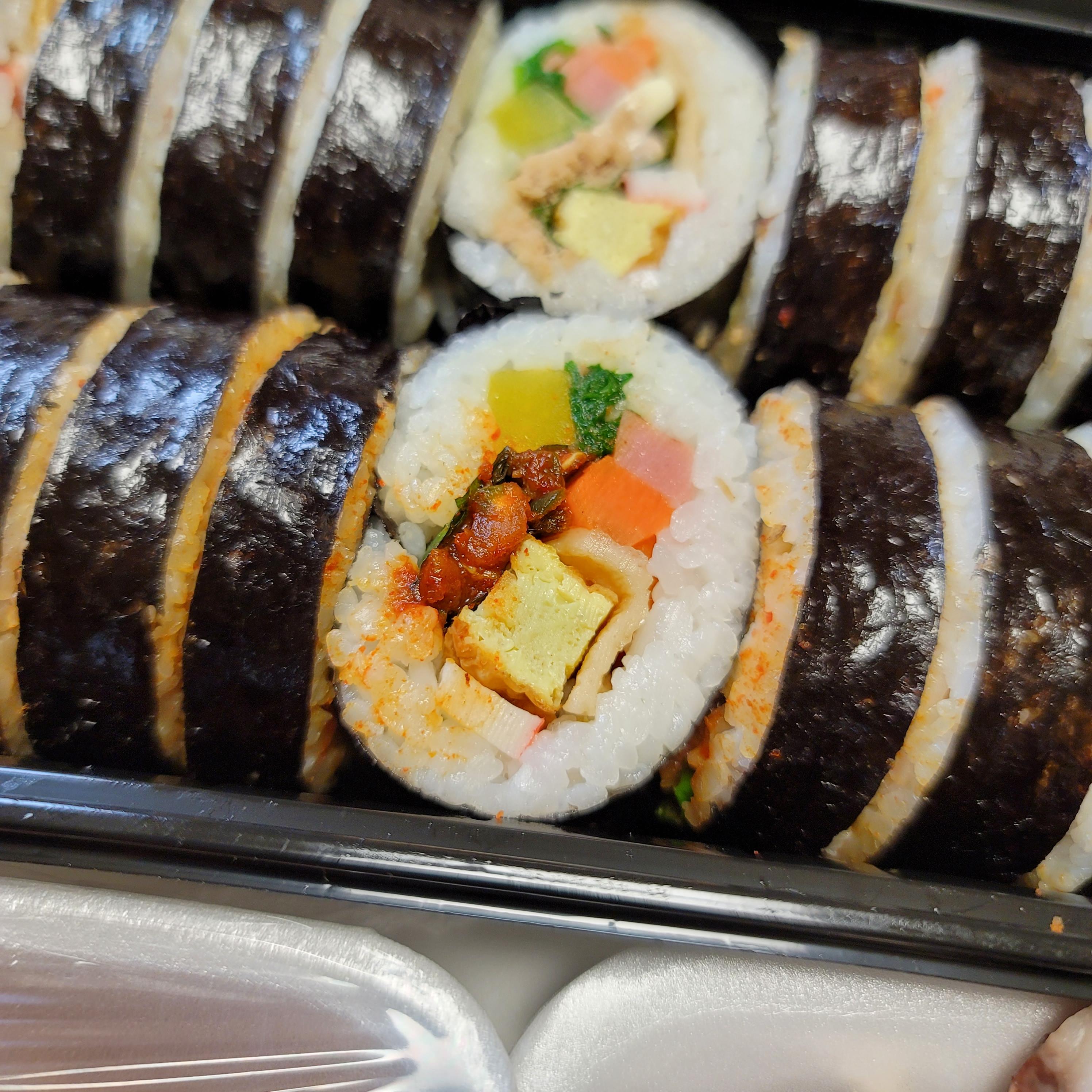소고기땡초김밥은 봉맘김밥의 대표 메뉴이고 살짝 매콤한 맛이 살아있다. 참치마요김밥은 우리가 생각하는 바로 그 맛인데 밥이 찰기가 있어서 쫀득쫀득하니 맛있었다. 일단 햄이 들어가 있는게 만족 ㅋㅋ