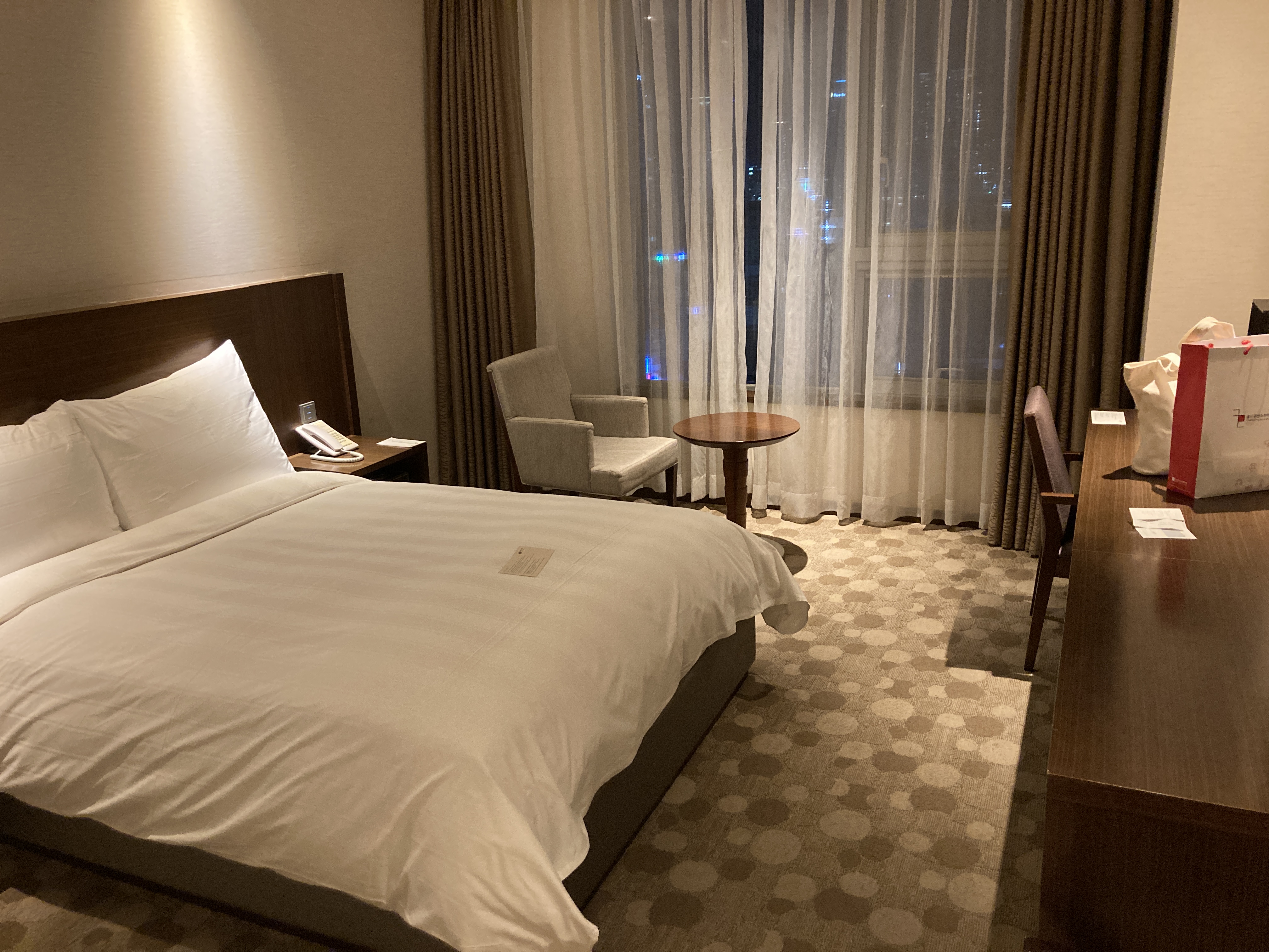 울산 롯데시티호텔에서 1박을 하였다. 비즈니스 출장으로 간 것이라서 간편하게 잠을 자기만 하면 되는데 딱 알맞은 곳이었다. 예약을 해두고 저녁 늦게 방문했는데 안타깝게도 호텔 주차장이 만차였다. 숙박객인데도 만차여서 주차를 못한다는게 좀 이상하긴 했지만, 근처 공터로 안내해주어 그쪽에 주차를 하고 호텔에 걸어갔다. 당일에 손님이 진짜 무지하게 많았다. 밤 늦은 시간에 체크인 하는 사람이 줄을 서 있었을 정도였다. 너무 피곤했던 날이라, 원래 계획은 호텔 입구를 촬영할 생각이었으나 이내 포기하고 룸만 촬영해봤다.