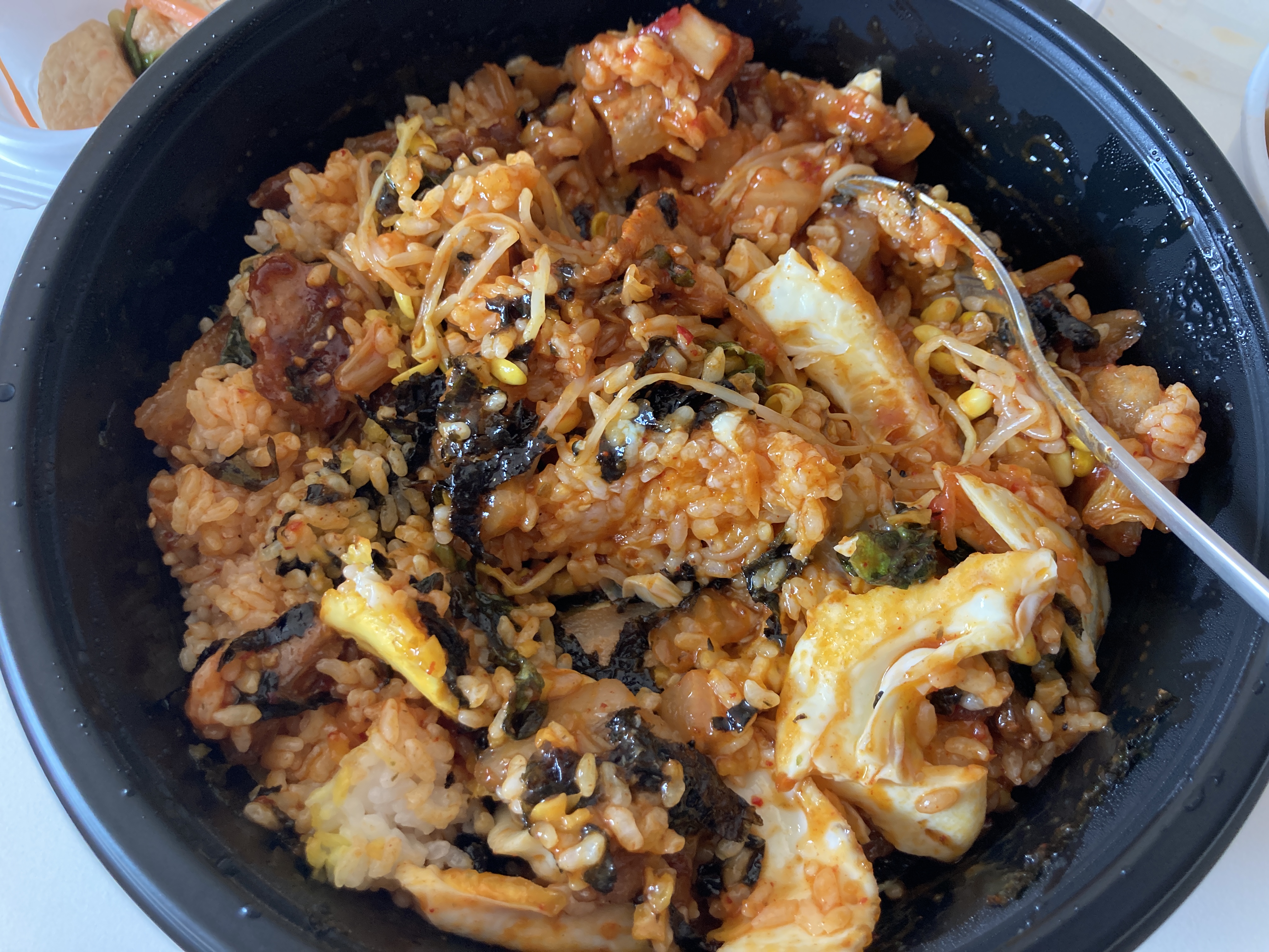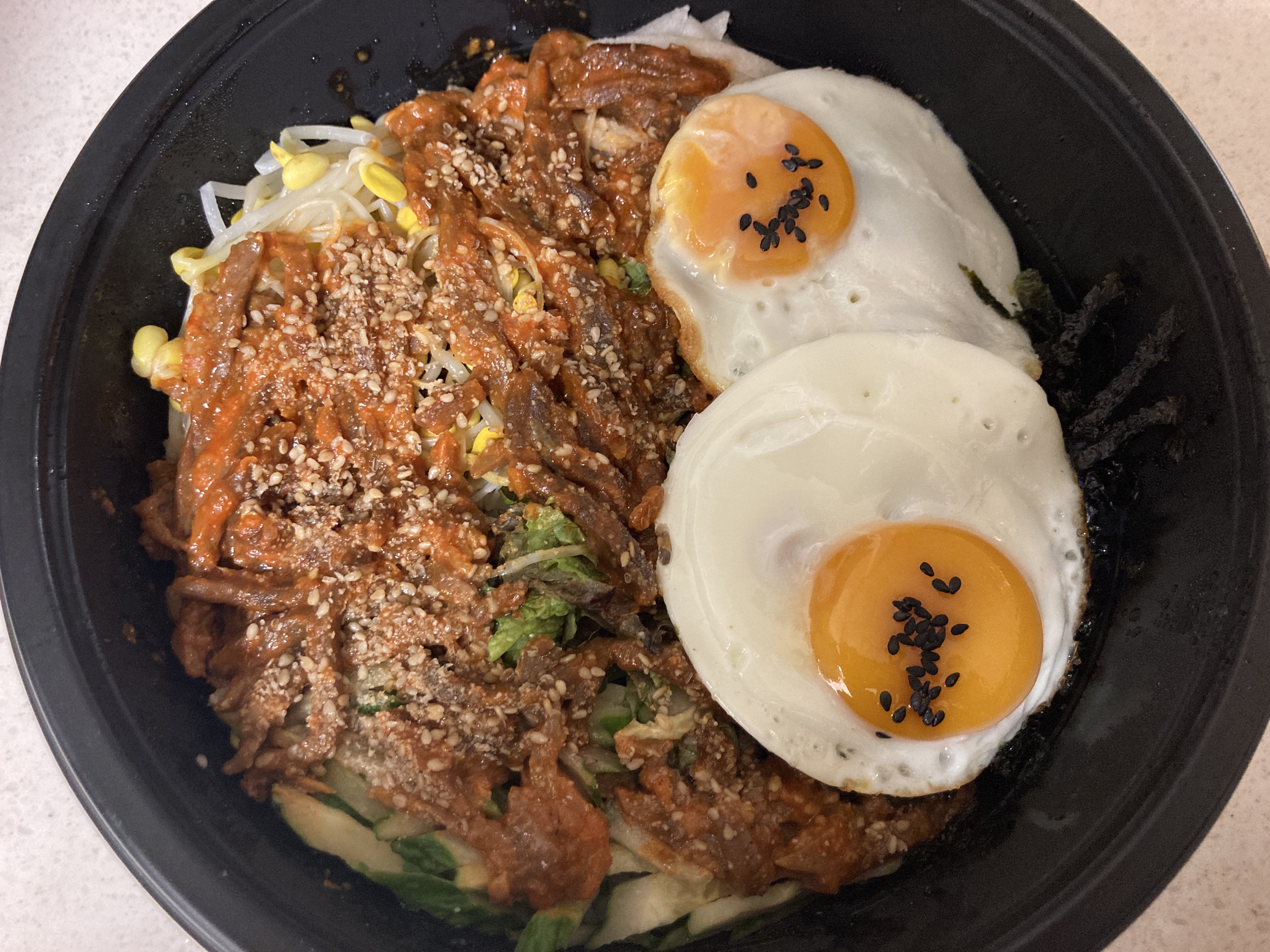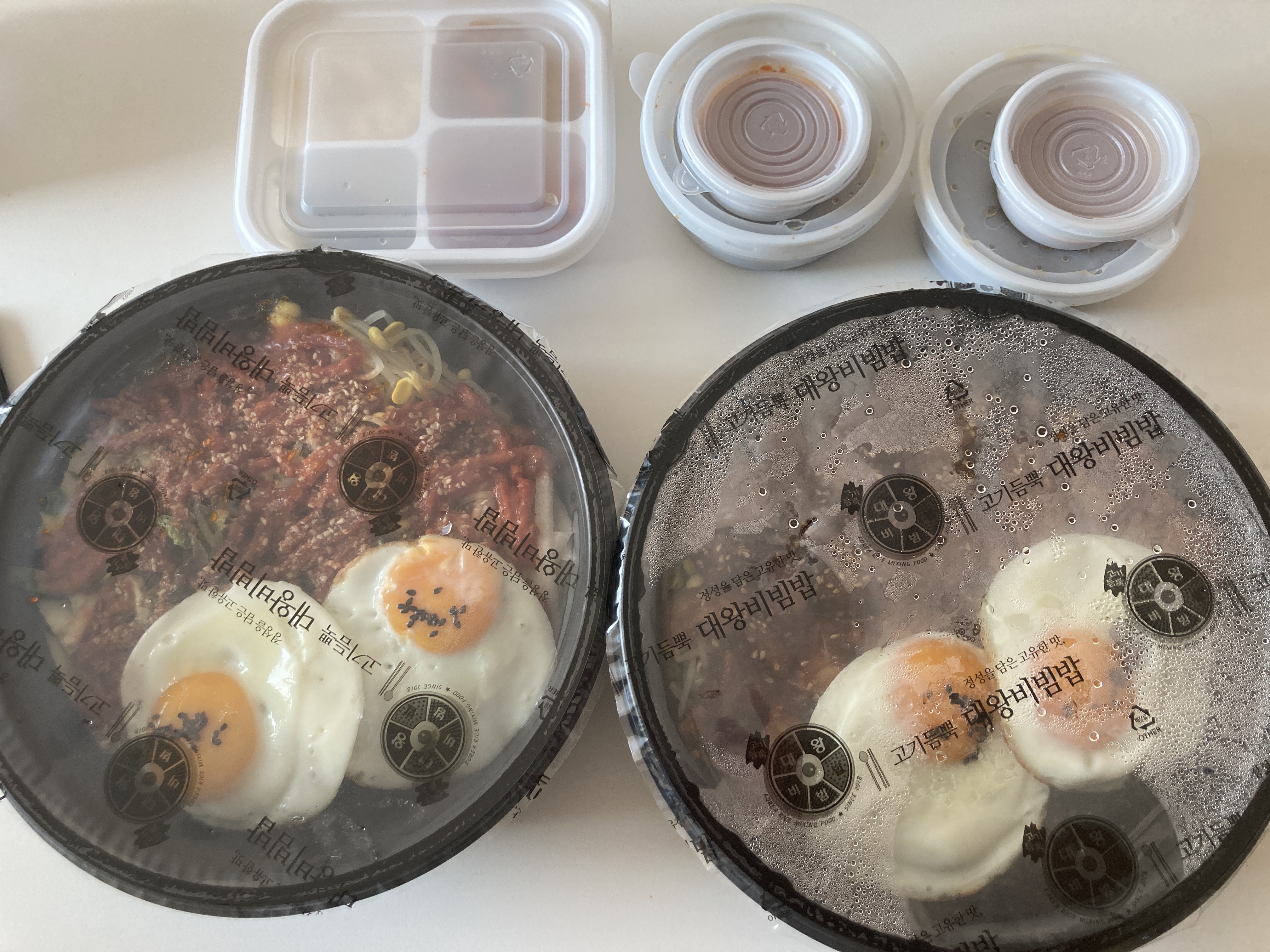 싱싱육회비빔밥. 육회 진짜 많이 들었더라. 육회비빔밥은 같이 주는 고추장을 좀 많이 넣어야 덜 느끼하게 먹을 수 있었다. 전체적으로 양 많고해서 너무 만족스러웠던 배달 음식점!
