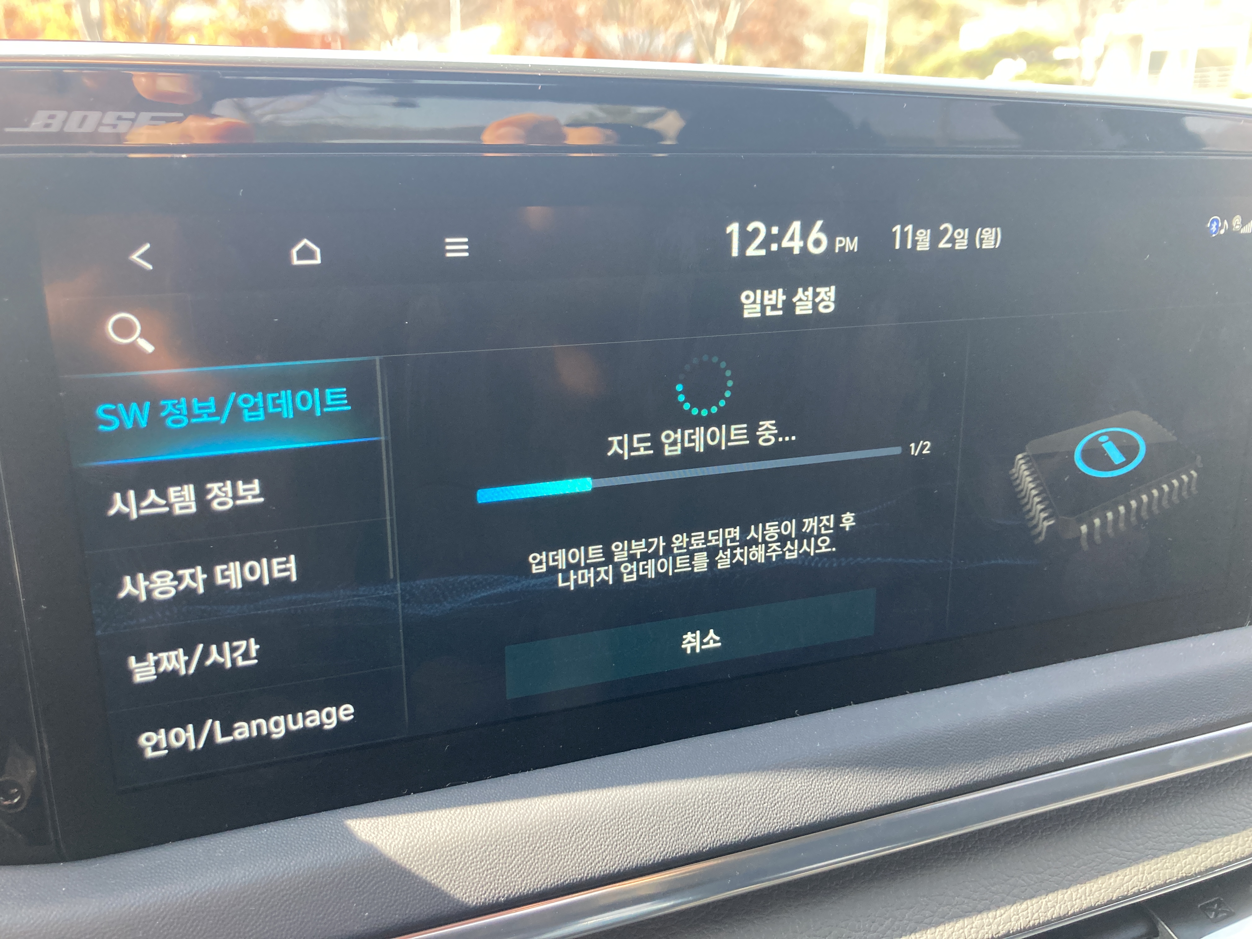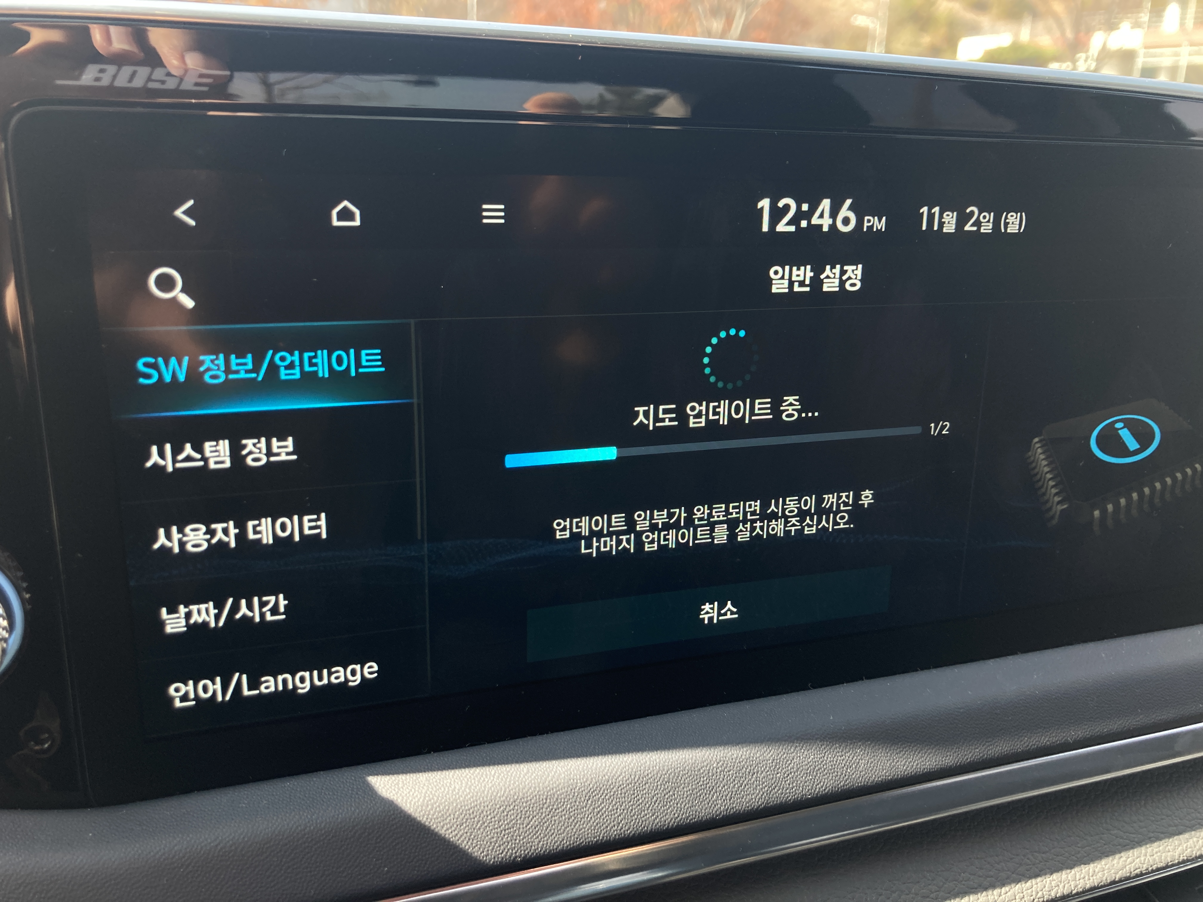 시간이 꽤 오래 걸리기 때문에 느긋하게 기다려주면 된다. 지도 업데이트 후 또 설치 중인가 뭔가가 뜨는데 시동을 꺼도 업데이트는 계속 된다고 하길래 시동 끄고 몇 시간 정도 일보고 왔는데 업데이트 안되어 있음...ㅋㅋㅋ 처음부터 다시 업데이트해야했다.