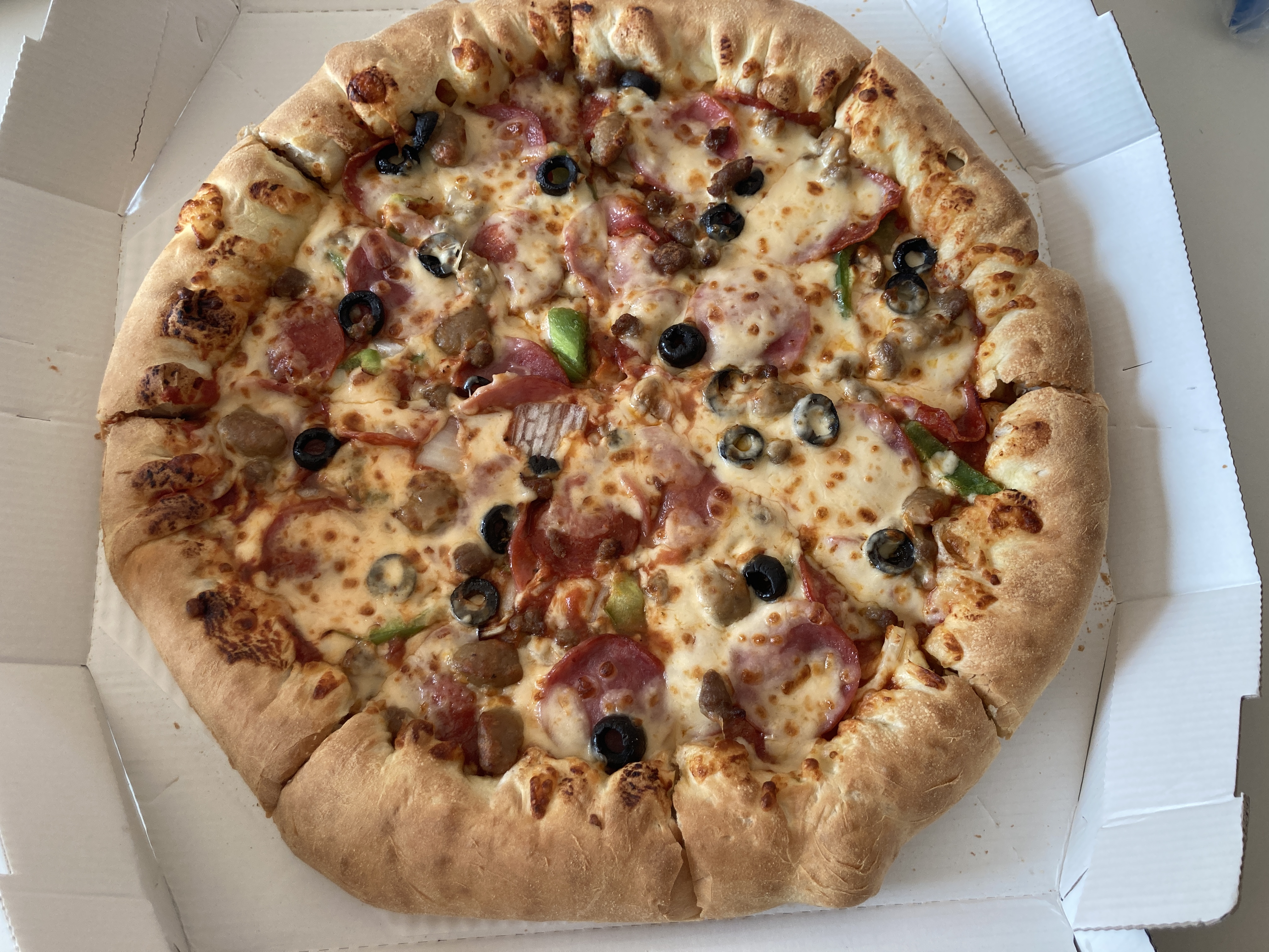 슈퍼디럭스 피자 라지. 진짜 맛있음 ㅋㅋ 내가 좋아하는거 많이 들었다. 토핑이 정말 맛있다. 이번에는 도우를 칠리핫도그엣지로 골랐는데 예전에 먹어보고 맛있어서 선호하는 도우다. 대신 5천원을 추가해야한다는게 좀 부담되긴 하지만... 맛은 포기못한다고...ㅠㅠㅋㅋ