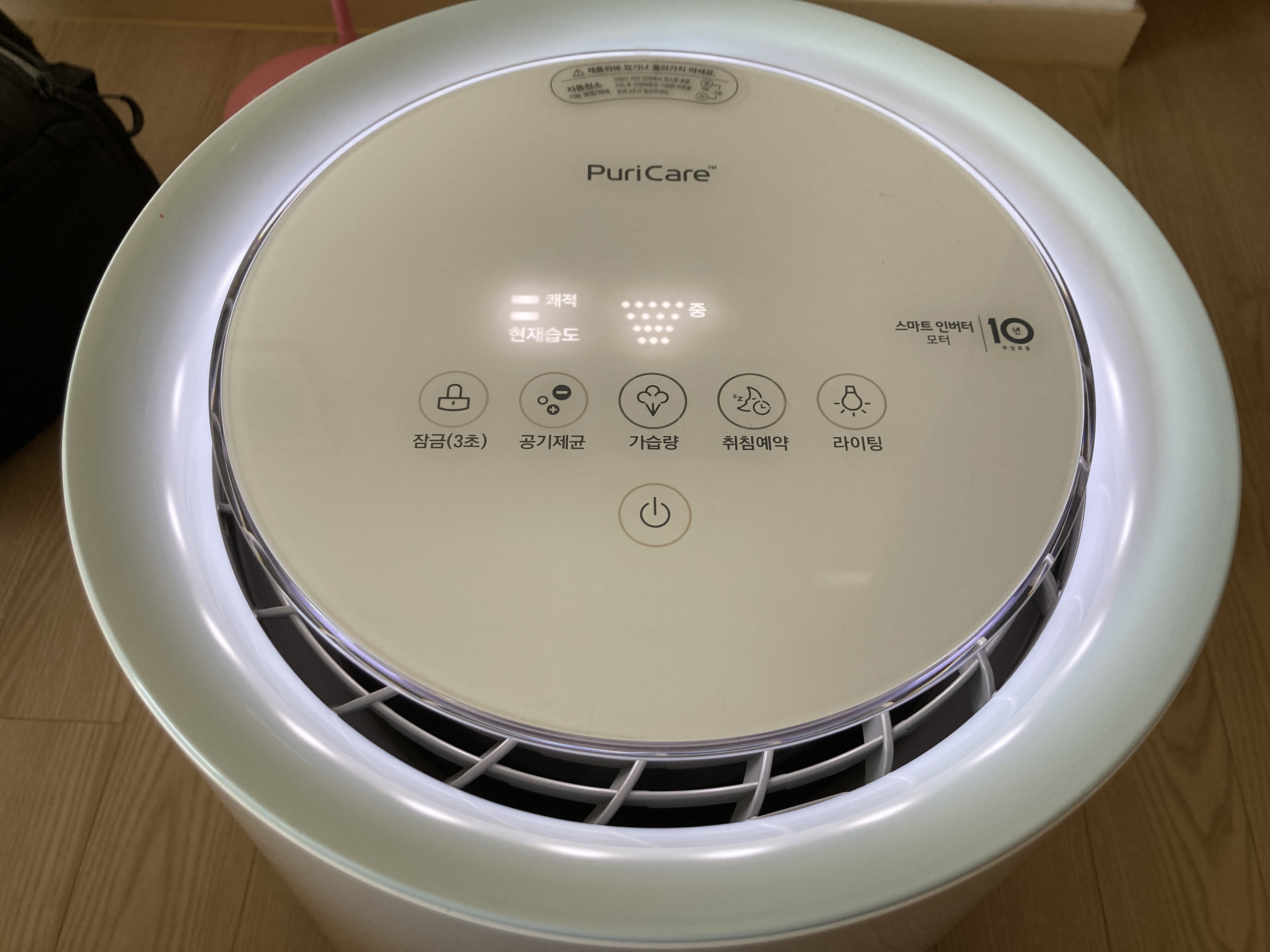 공기제균 기능은 거의 쓰지 않고 있고 라이팅도 거의 안 쓰는 중. 대부분 취침예약으로 쓴다. 물을 바가지로 두 바가지 정도 넣어주고 자는데 물부족 뜬적 없고 아침에 일어나서 보면 물통에 물이 많이 남아있다. 방 문 닫고 습도계 틀면 충분. 거실에서는 아직 써보지 않았는데 겨울에 지인들 놀러오면 거실에서도 구동시켜 볼 생각이다. 만족!