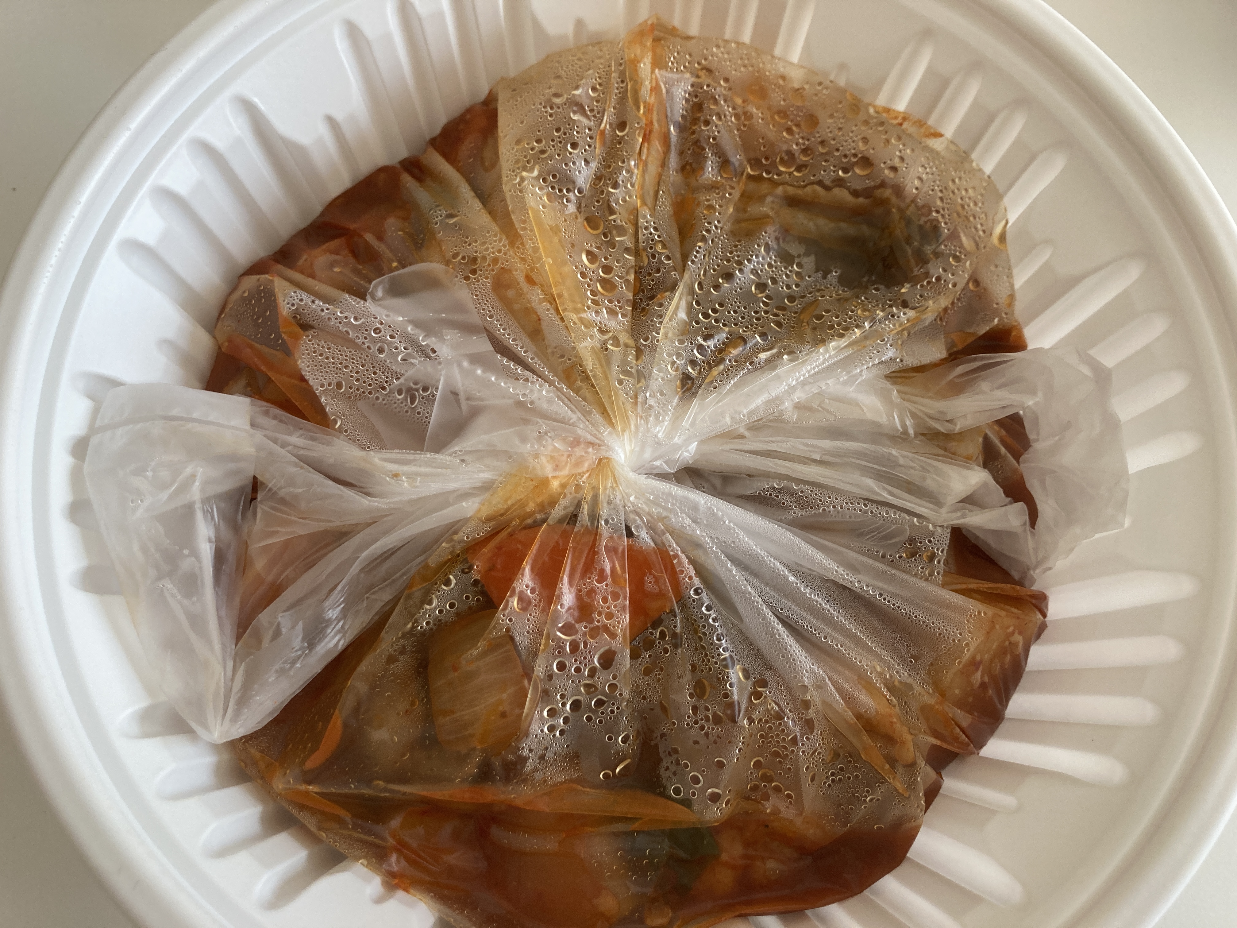보통 다른 곳에서는 그릇 안에 그냥 음식물이 들어있는데 여기는 국물 새는걸 방지하기 위함인지 봉투에 담겨져 있다.