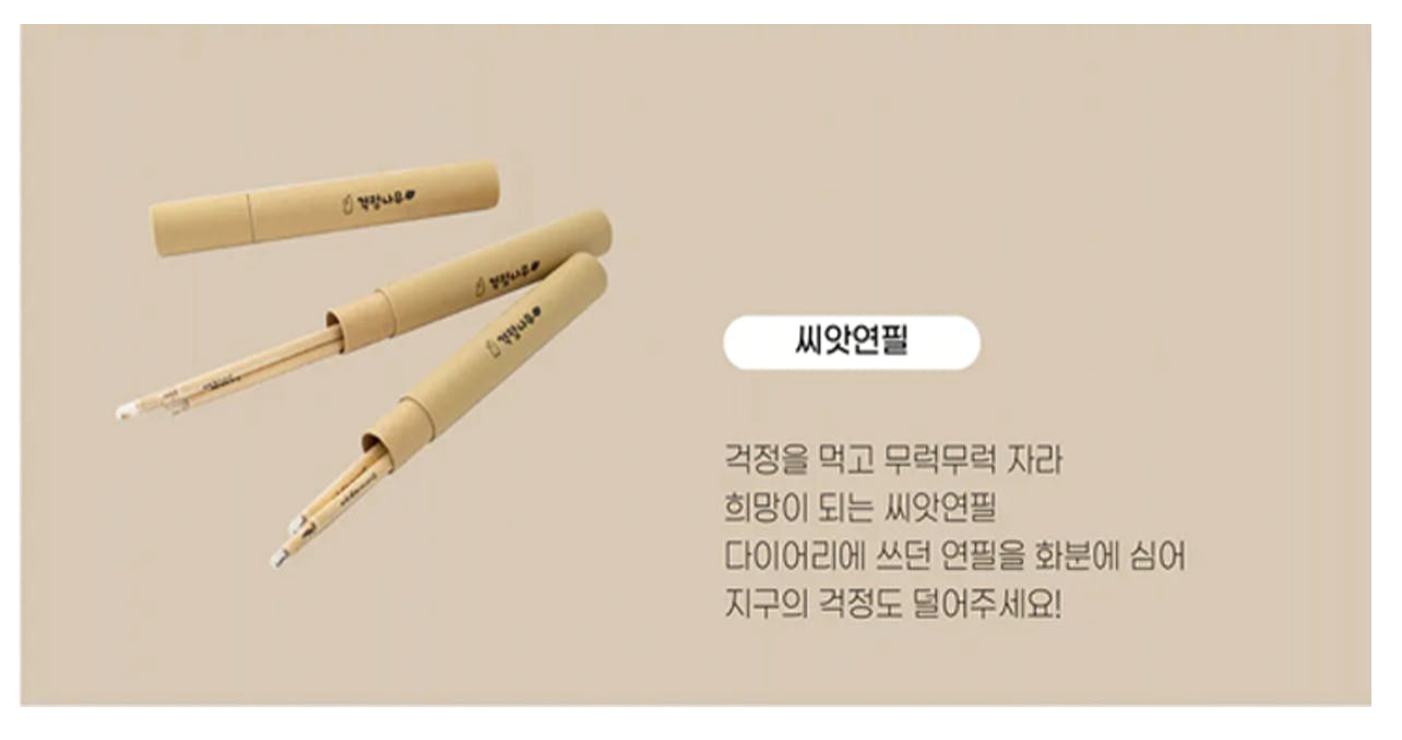 걱정나무 스티커와 함께 쓸 수 있는 스티커와 씨앗 연필! 걱정나무에 잘 어울리는 디자인으로 나와있답니다!