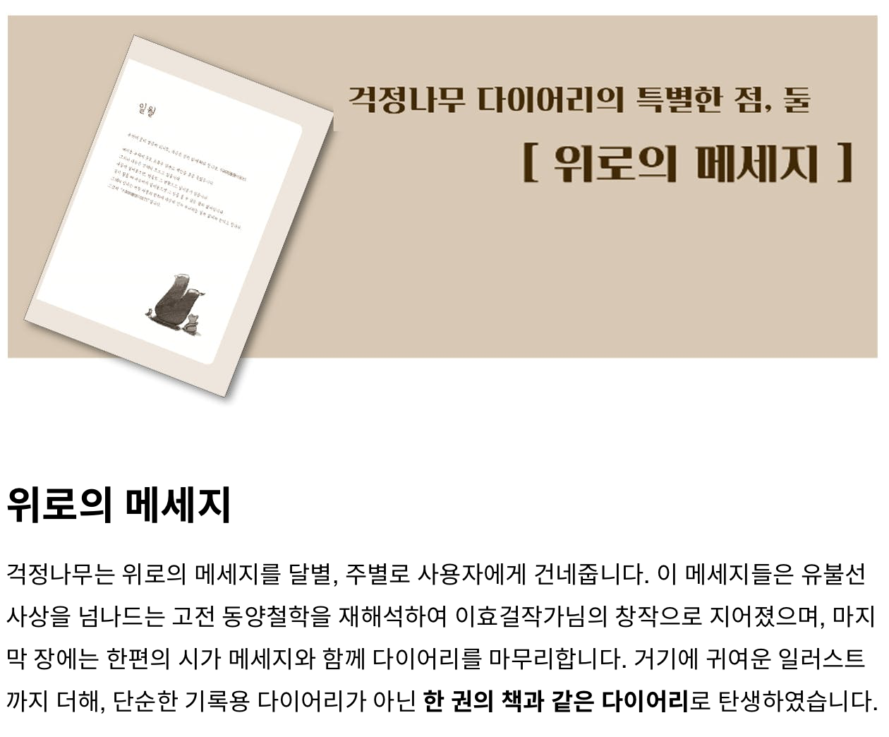 위로의 메시지는 다이어리 사용자에게 전달해주는 글귀입니다.