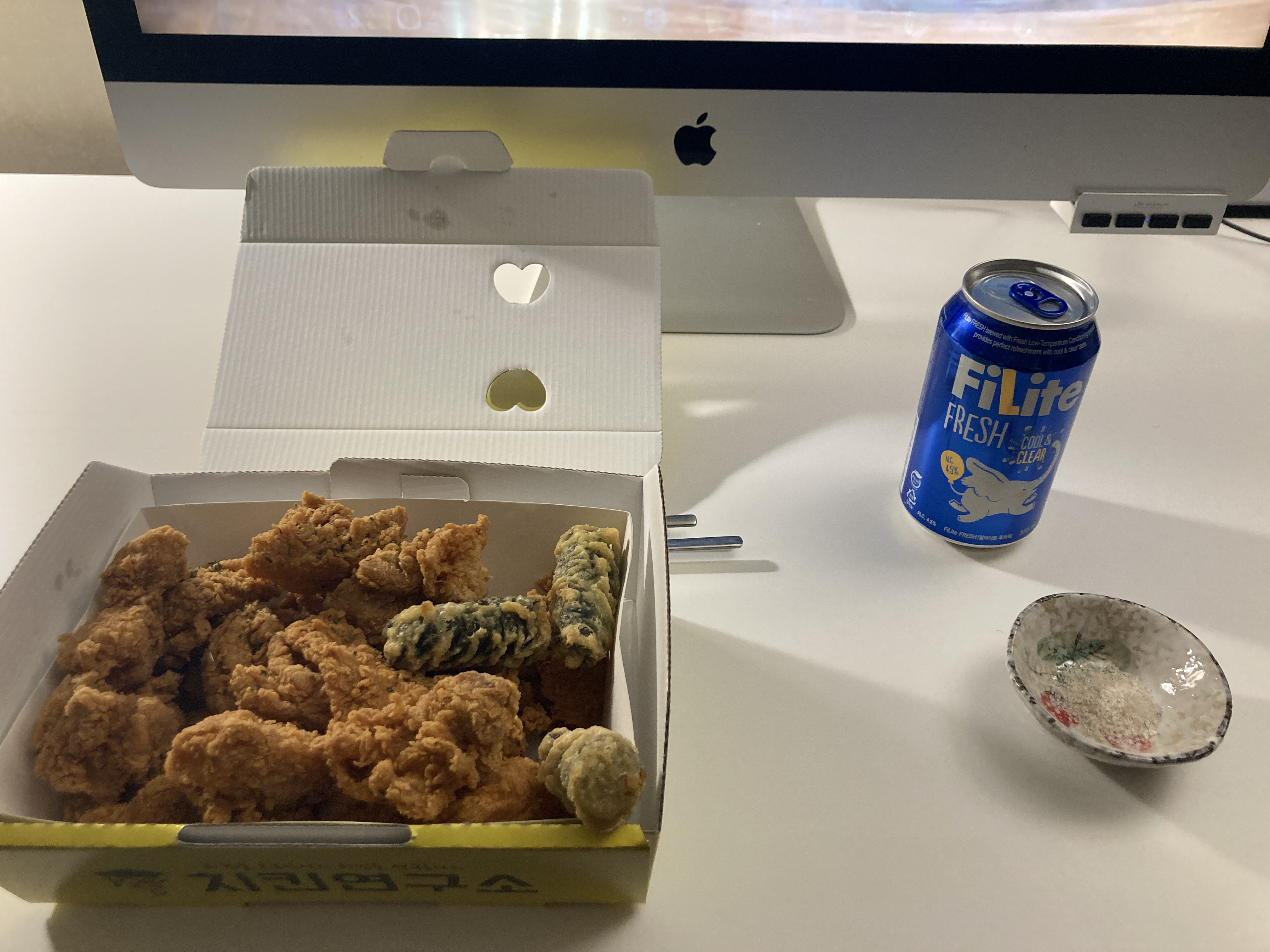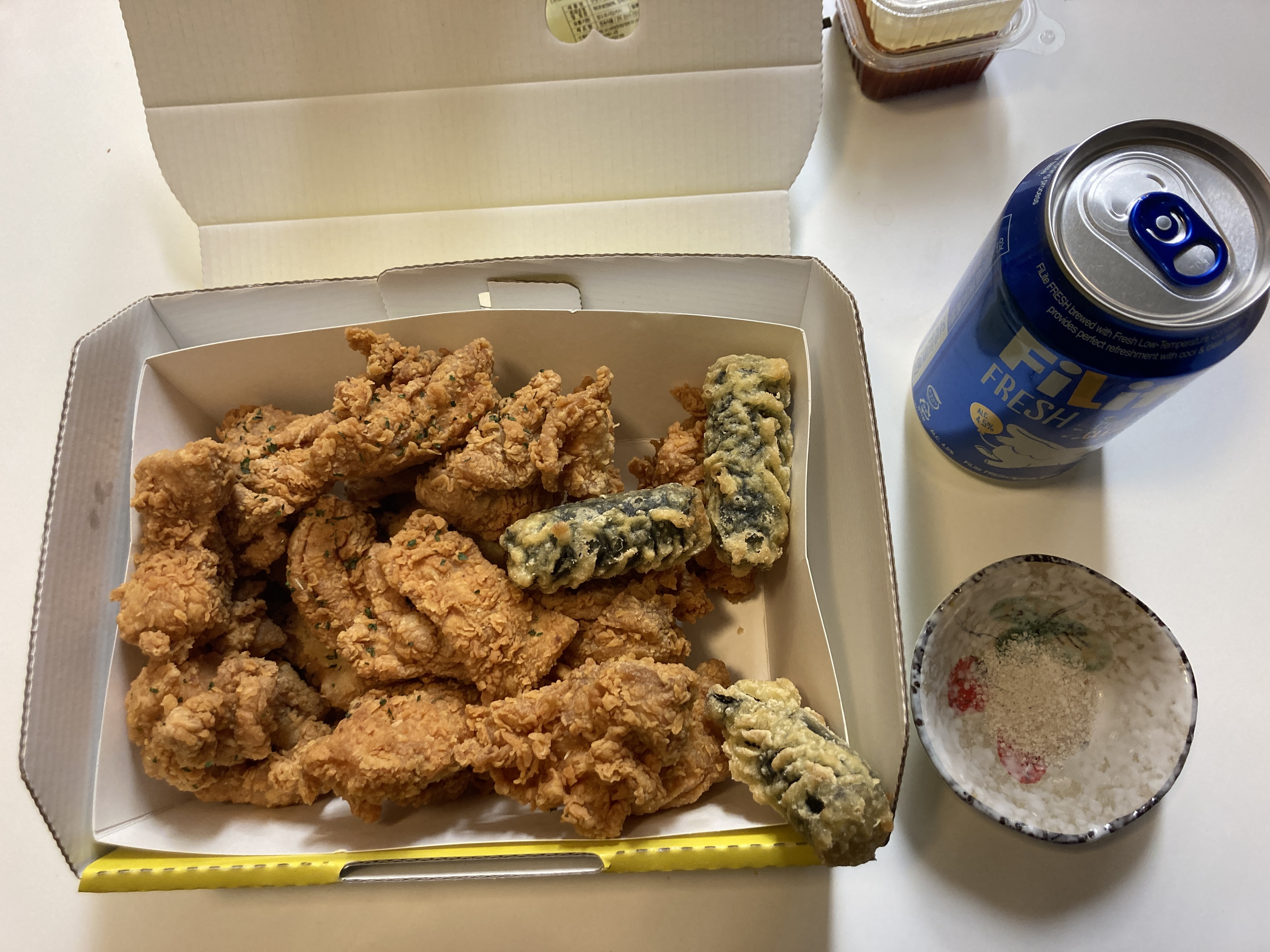 치킨 먹는데 맥주 한 캔 빠질 수 없지. 맥주는 예전에는 카스를 먹다가 요즘에는 필라이트로 갈아탐 ㅋㅋ 가성비 굿