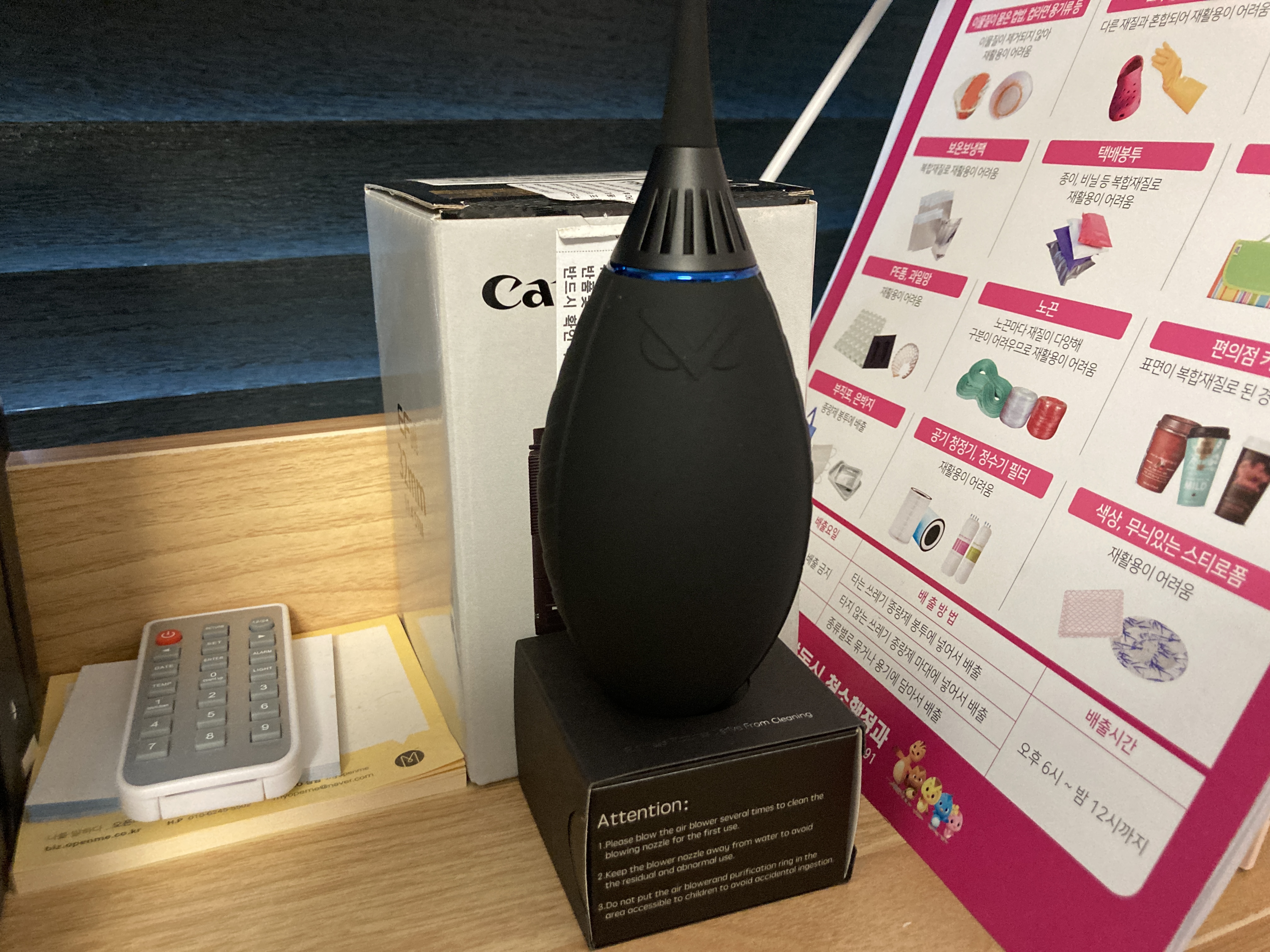 클리닝 융은 쓸 일이 거의 없어서 일단 어딘가에 보관해두었다. 그런데 블로워는 카메라 청소할 때 매우 자주 사용하는 녀석인데 기존에 쓰던게 좀 오래되기도 했고 저렴한 녀석이었던터라 안좋은걸 모르고 써왔었지만, 이 녀석을 써보고는 마음이 확 바뀌게 되었다. 일단 촉감이 매우 좋고 바람도 꽤 강하게 나가는 것 같다. 무엇보다 디자인이 검은색에다가 매력적이라서 보기에도 좋고 ㅎㅎㅎ 진짜 마음에 드는 상품이고 잘 쓰게 될 것 같다. 카메라 렌즈나 바디를 청소할 때 블로워를 많이 쓰고 있어서 유용하게 사용할 듯! 그리고 또 좋은점은 블로워가 이렇게 세워진다는거 ㅋㅋㅋ