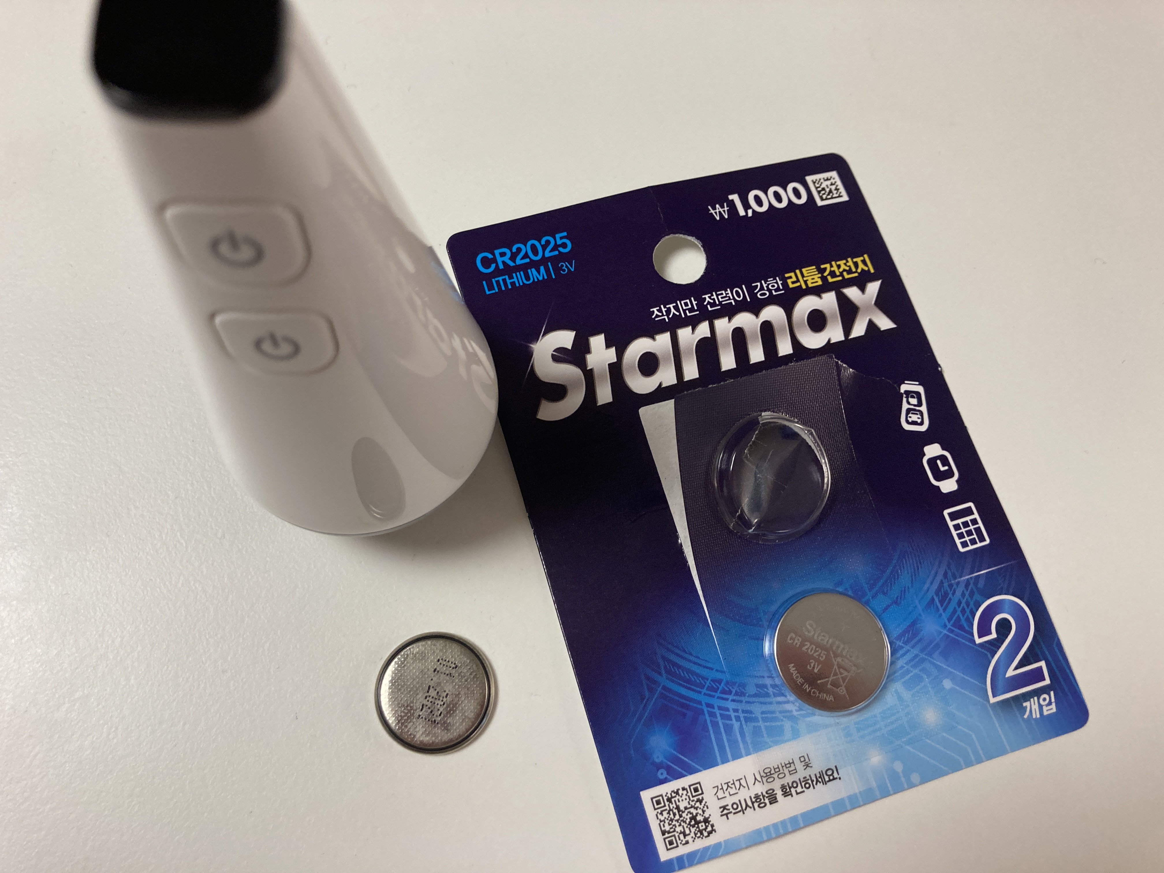 건전지는 동그란게 들어가는데 이것도 규격이 여러가지더라. 리모컨 뒤에 읽어보니까 CR2025 3V를 써라고 나와있길래 가까운 다이소에 가보니 해당 건전지를 팔고 있어서 구매! 1천원에 2개 짜리 들어있어서 오래도록 쓸듯 ㅋㅋㅋ