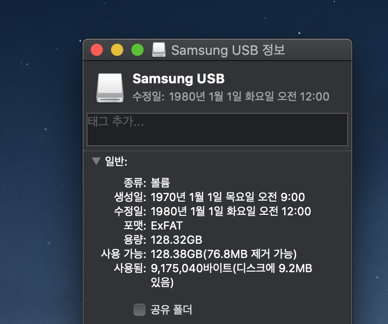 원래 맥과 윈도우 공용으로 쓰려고 포맷해서 쓰려고 했는데 처음 받자마자 보니까 exFAT으로 포맷돼 있네? 그냥 바로 씀 ㅋㅋ