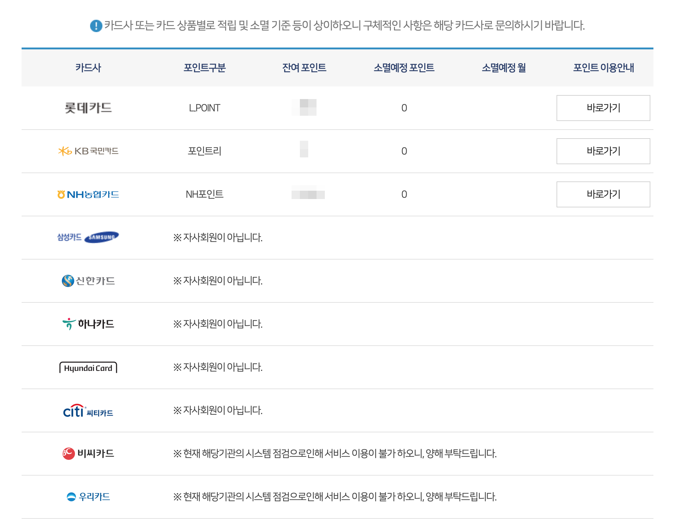오늘 여신금융협회에서 만든 사이트에서 각종 카드들의 포인트 조회 후에 현금화 할 수 있다길래 한 번 해보았다.