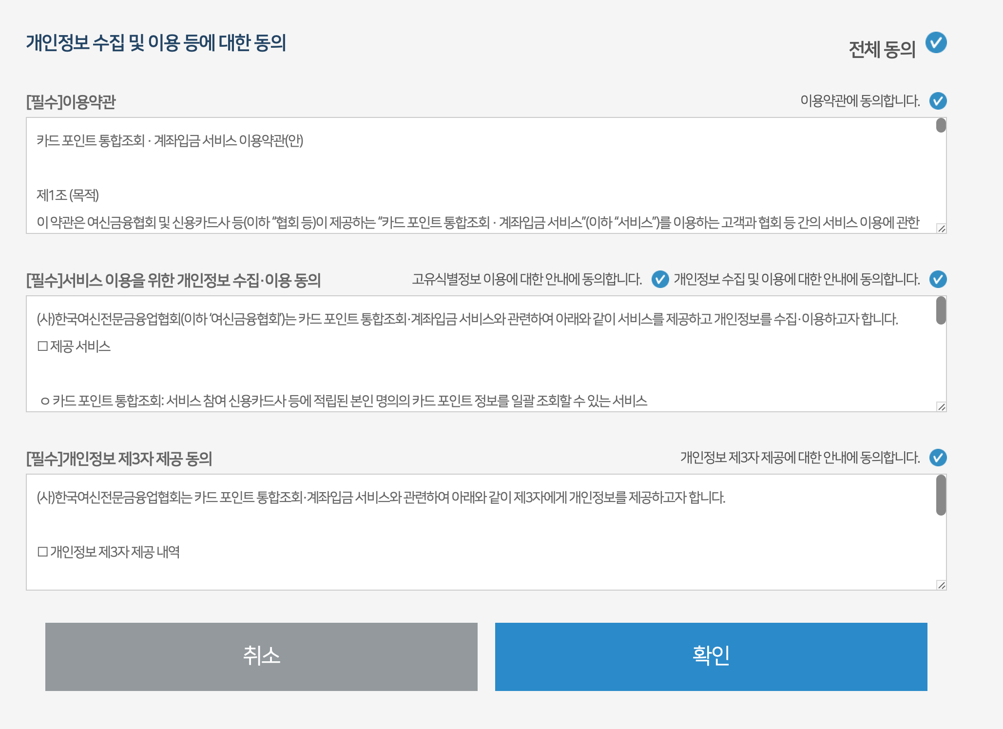 여신금융협회 카드 포인트 통합조회 사이트