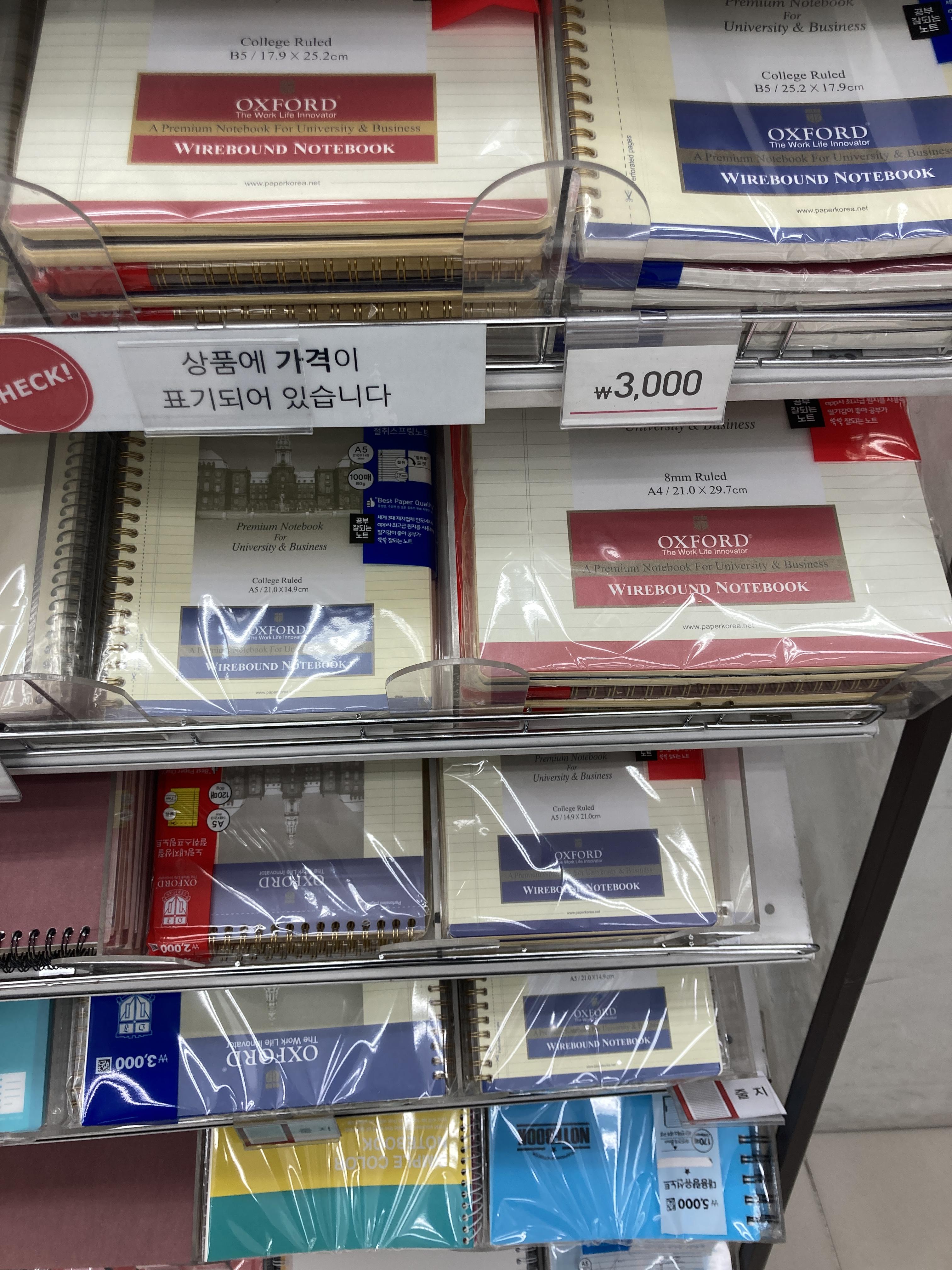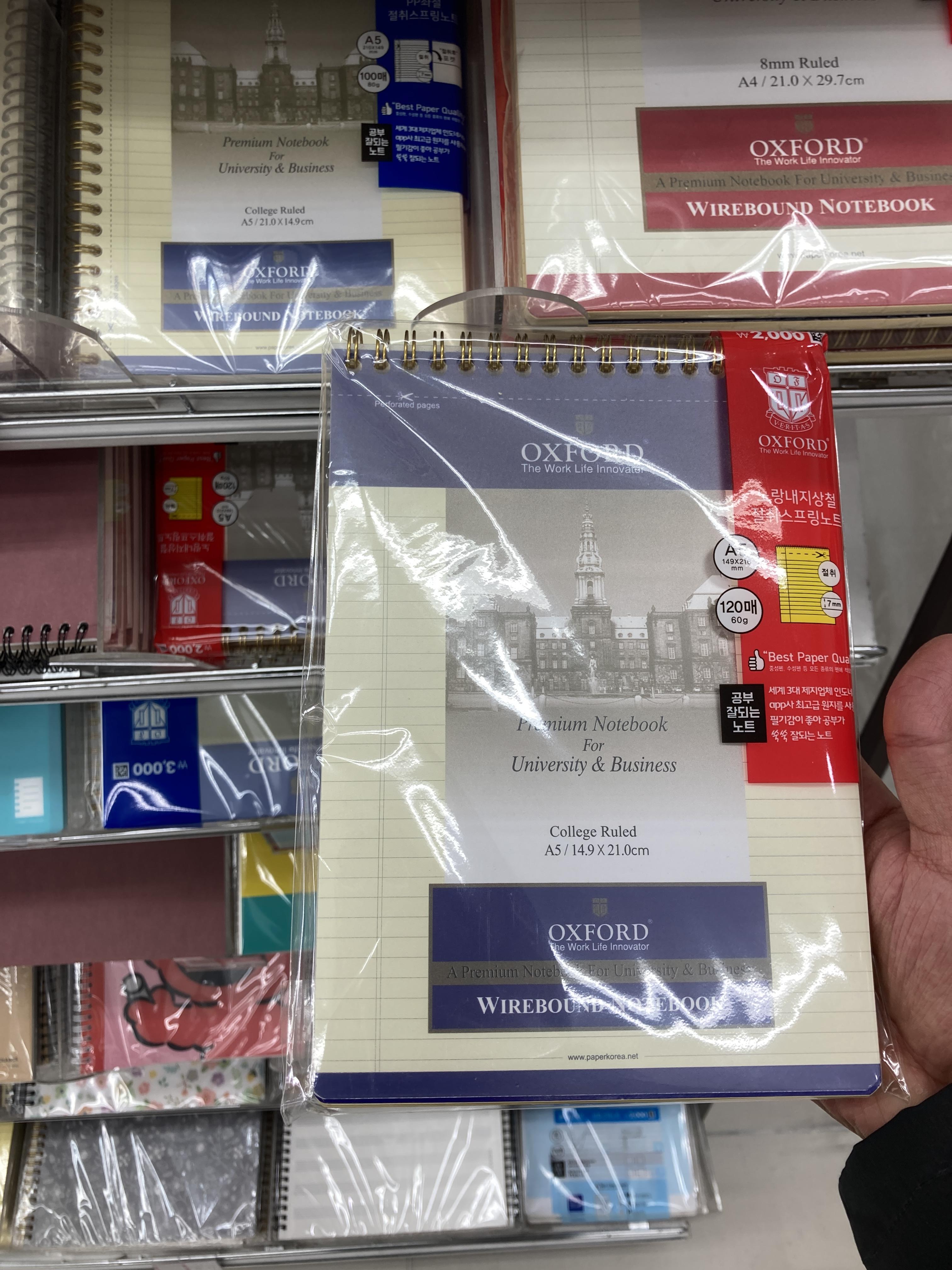다이소에 갔더니 여러개의 종류의 옥스포드노트를 팔길래 사이즈를 잘 비교해보았다. 가장 마음에 드는 사이즈는 B5였다. A4의 경우 넓직넓직해서 좋긴한데 책장에 세로로 들어가지 않다보니까 보관에 좀 용이하지 않아서 딱 알맞은게 B5라고 생각했는데, 안타깝게도 칸의 높이가 좀 짧다. 옥스포드노트 A4 사이즈의 경우 한 칸의 높이가 8mm인데 비해 다른 사이즈는 모두 7mm를 가지고 있어서 할 수 없이 다시 A4로 샀다. 120장짜리로 사서 두툼하게~ 오래도록 쓸 수 있을 것 같다. 붉은색이 있고 푸른색이 있는데 푸른색으로 구매. 옛날에도 푸른색 썼었던 것 같은데... 아? 그러고보니 옛날에 쓰다가 남은 옥스포드노트는 어디갔는지 찾아봐야겠다. ㅋㅋㅋ