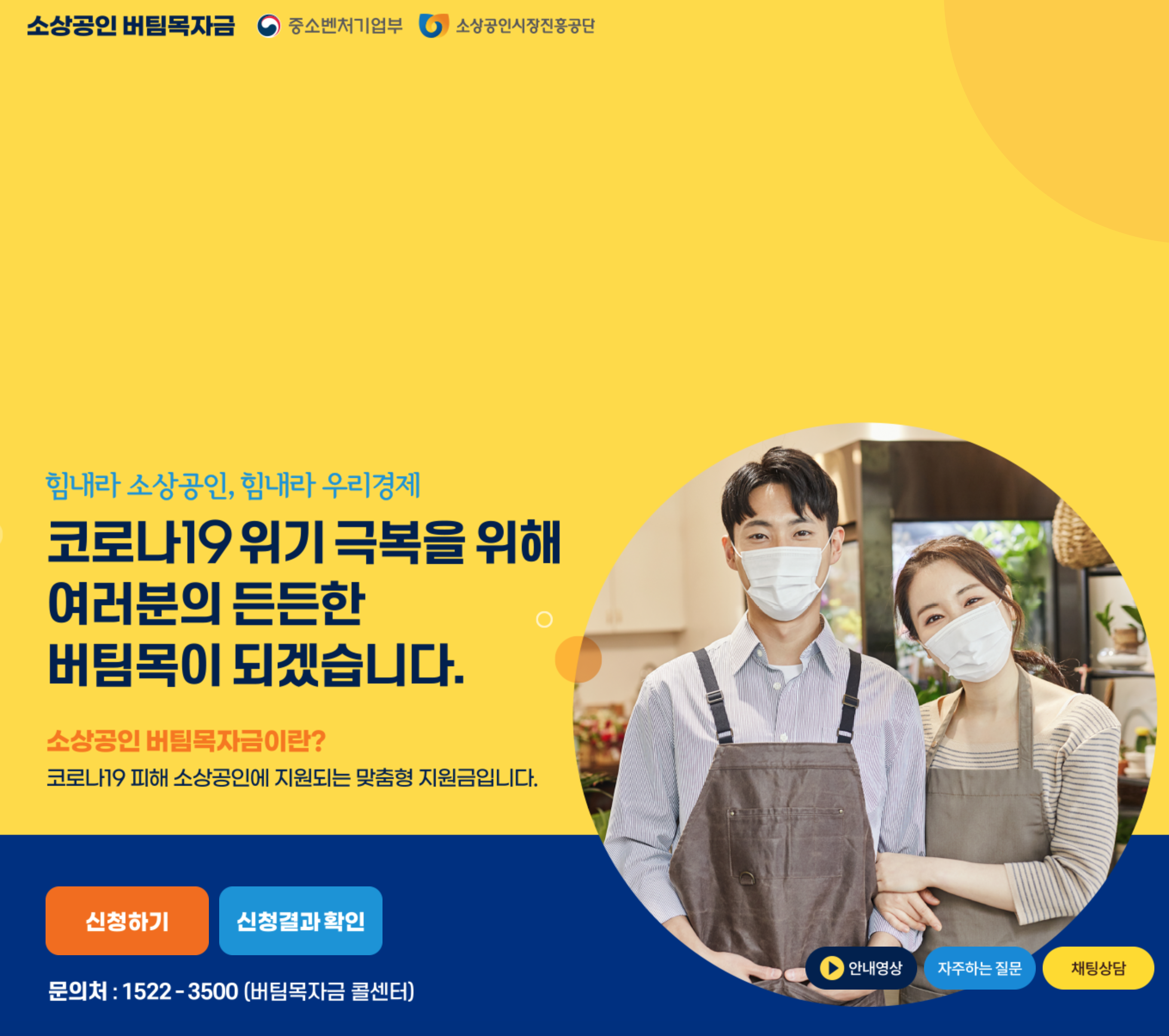 홈페이지에서 신청할 수 있습니다. 집합금지 또는 영업제한 업종은 300만원, 200만원이 지원되고 일반 업종의 경우에는 2019년 대비 매출 감소한 소상공인 중 연매출 4억원 이하 사업자에게 100만원을 지원합니다.
