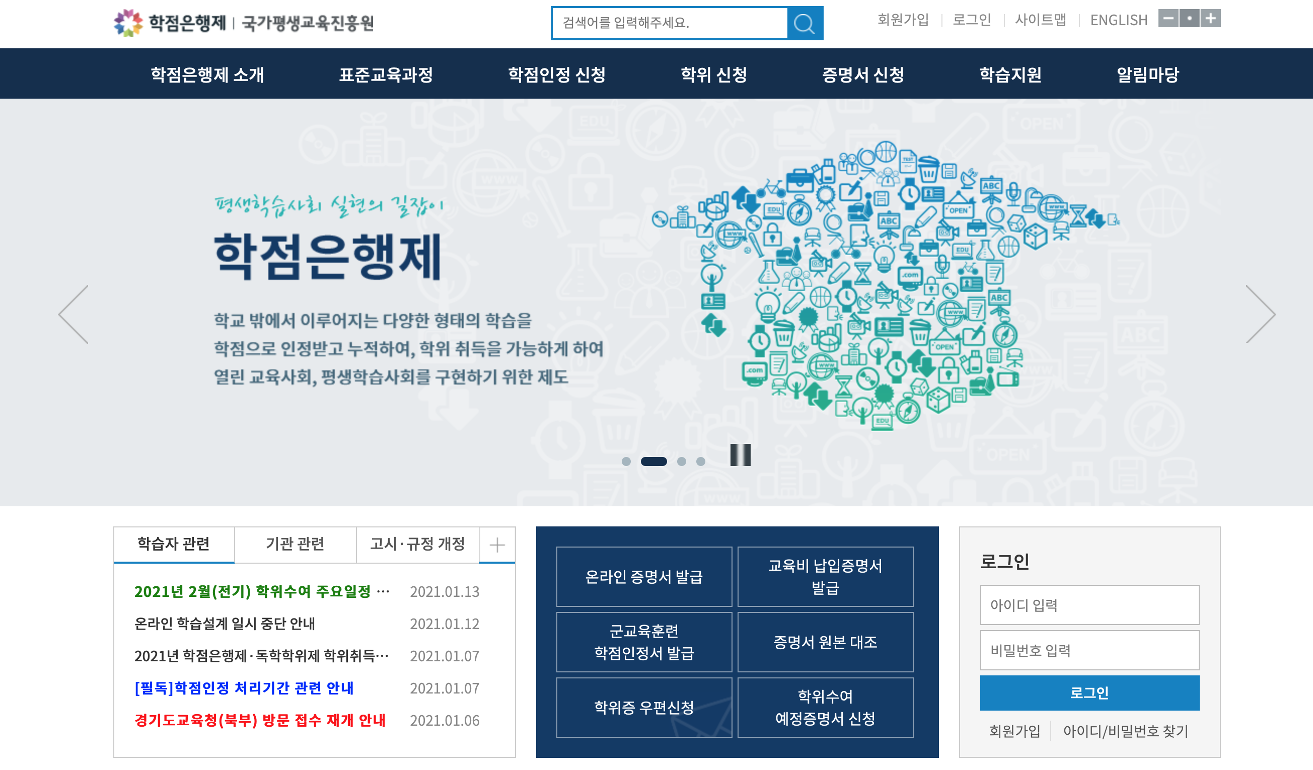 학점은행제 홈페이지|국가평생교육진흥원