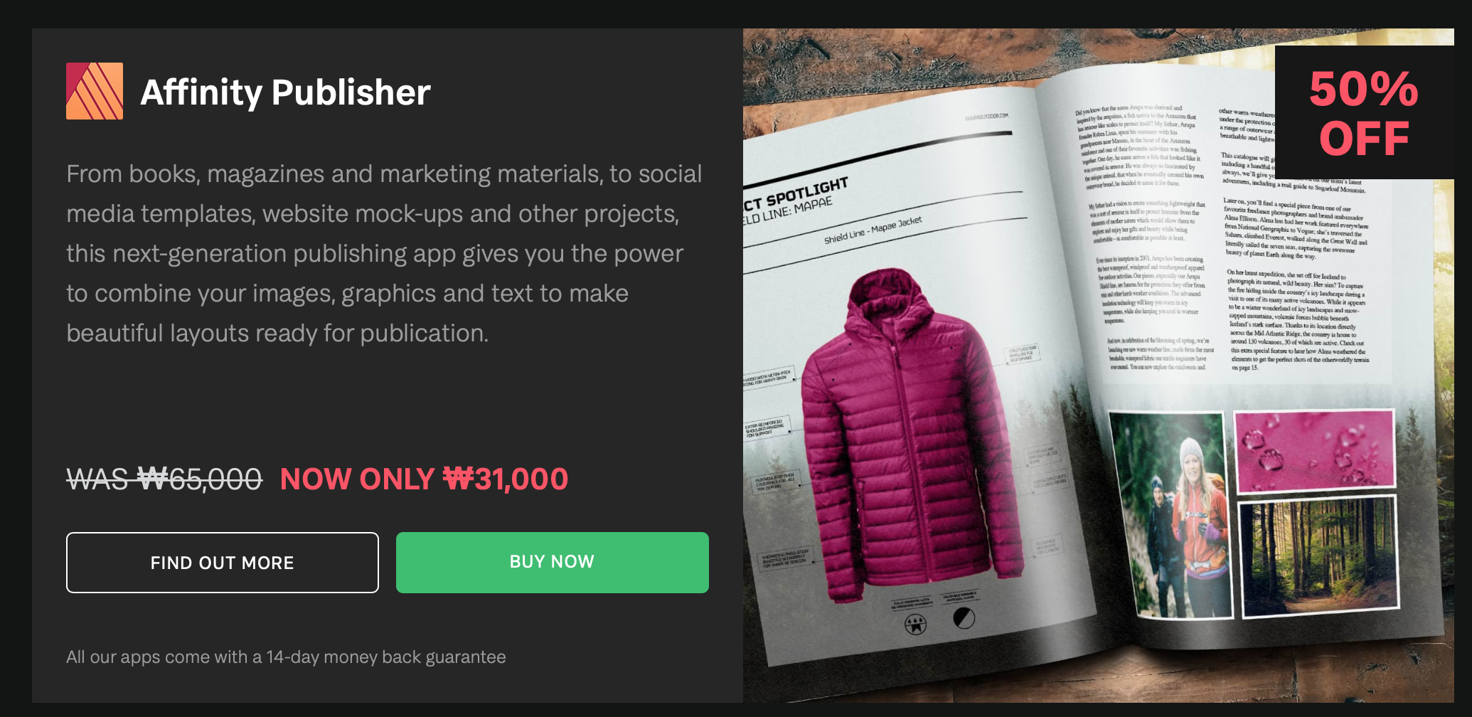 어피니티포토, 어피니티디자이너 등 어피니티 소프트웨어 50% 할인