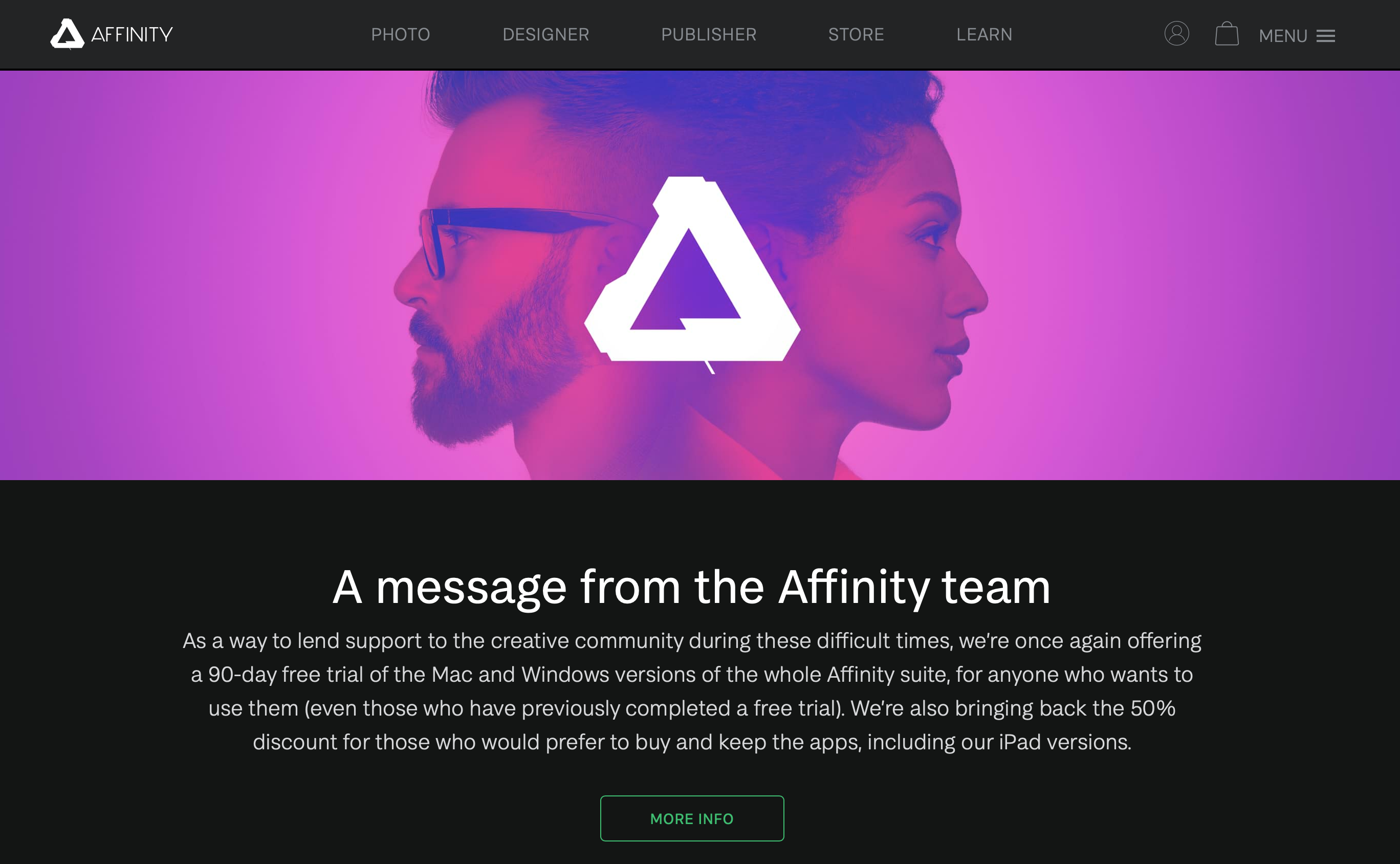 From the smoothest, fastest photo editing and graphic design software to the most powerful publishing software, Affinity apps are pushing the boundaries of what’s possible with creative technology.